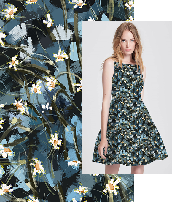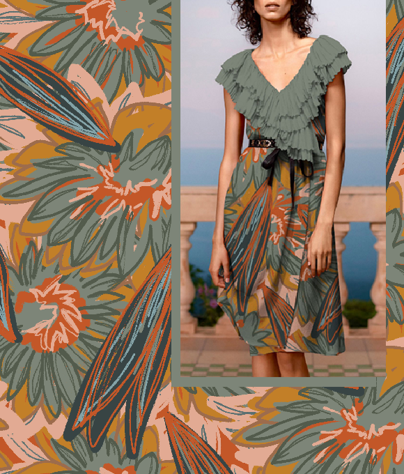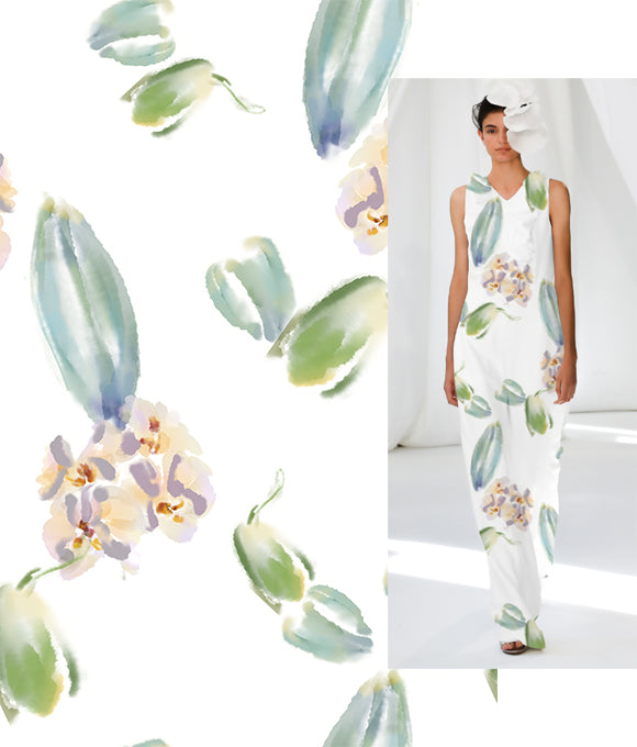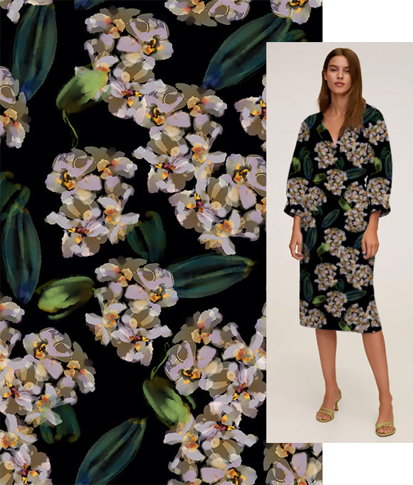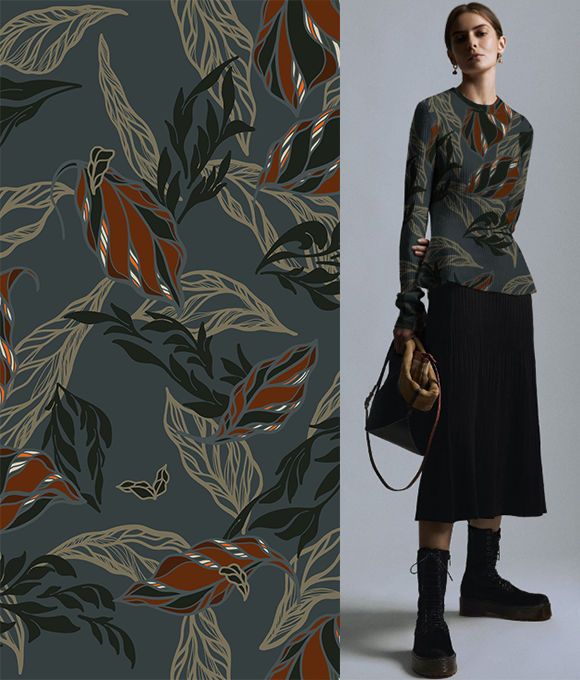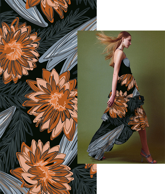 Las flores texturizadas que cubren la falda florecen libremente, evocando una belleza serena y encantadora, como una pintura al óleo. Las delicadas y complejas líneas dibujan pétalos elegantes, que se despliegan de manera natural gracias a una paleta de colores cuidadosamente elegida, bailando en un ambiente romántico y vintage lleno de luz. Tanto los patrones como los colores están llenos de estilo, con flores intrincadas y detalladas que expresan un carácter único y una suave sensación artística, aportando una estética sofisticada y encantadora.