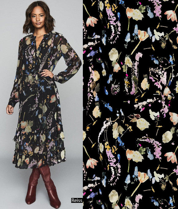 Patrones nítidos, realistas y con una rica textura, llenos de detalles precisos. Las grandes flores en capas, con variaciones de profundidad, se agrupan para crear una estética romántica y sofisticada. Los límites entre los motivos florales están dispuestos de manera irregular pero armoniosa, brindando una sensación tridimensional y delicada que abre nuevas posibilidades creativas para los diseños florales. Los colores brillantes, con efectos difuminados y en tonos fríos y elegantes, aportan una fuerte sensación de movimiento visual. La combinación de colores claros y oscuros no se limita a una sola tonalidad, lo que eleva el carácter majestuoso y refinado del diseño en su totalidad.