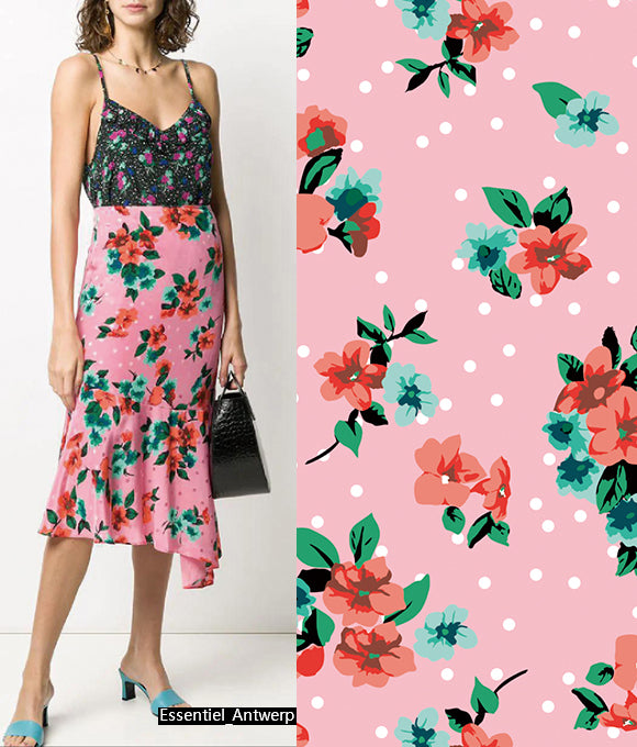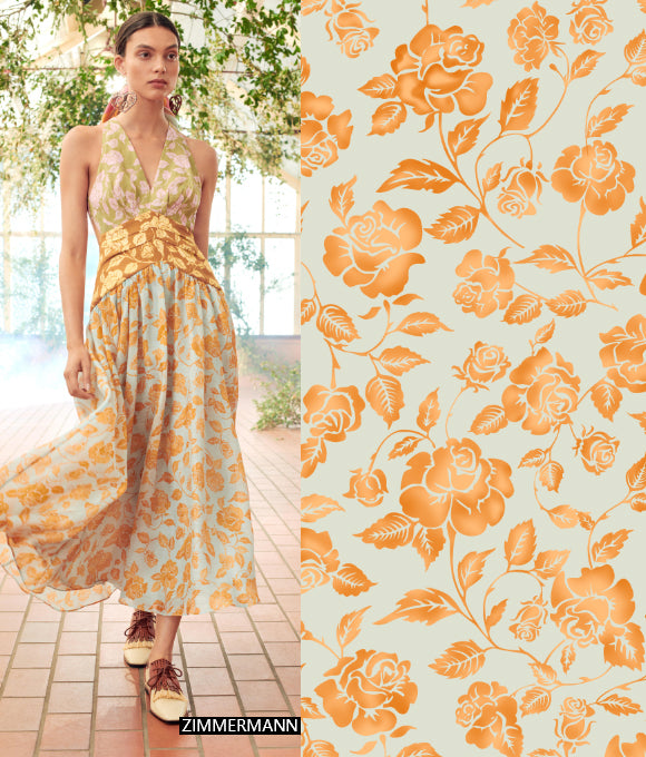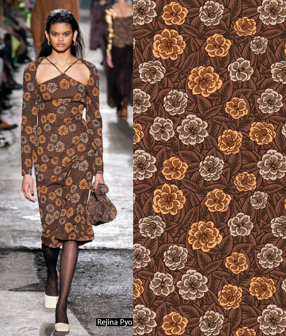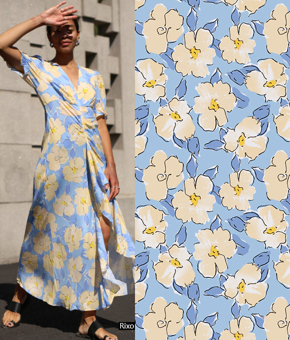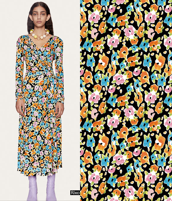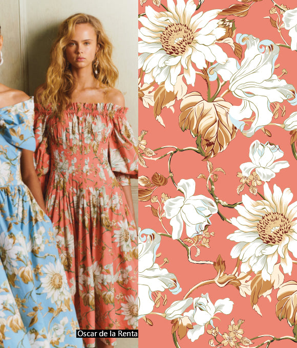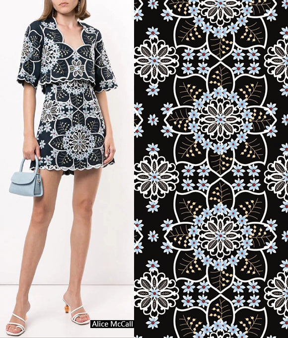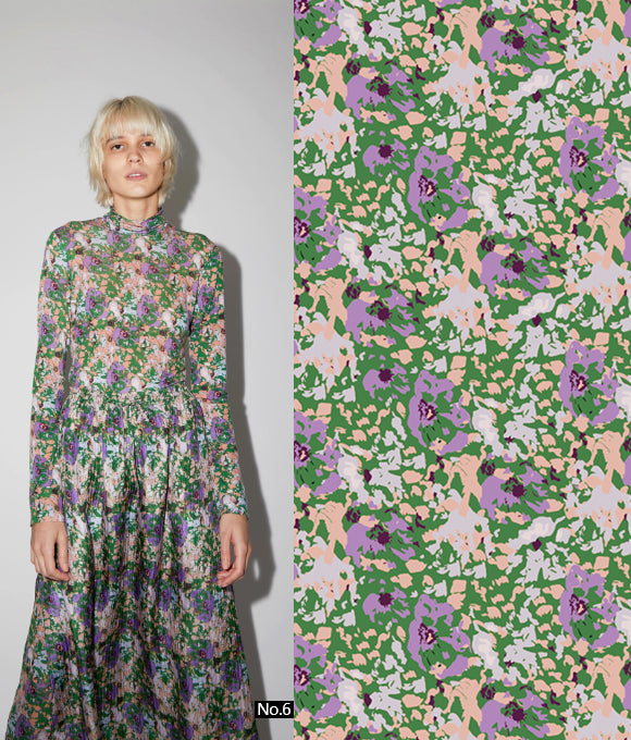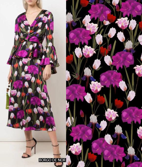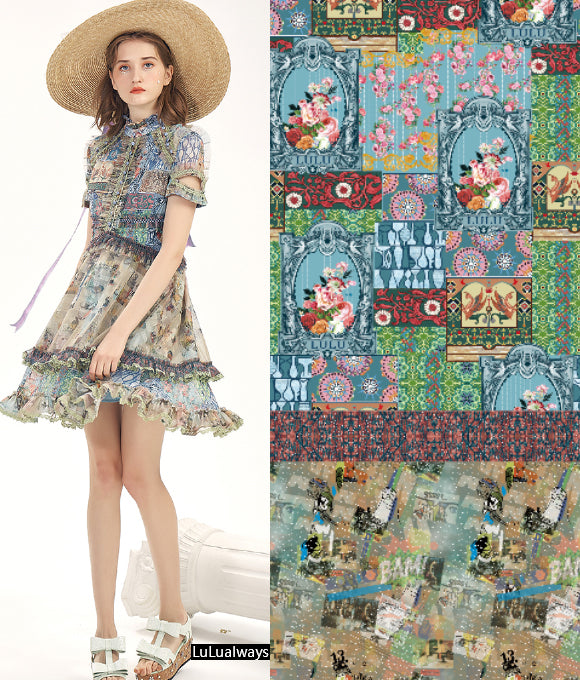 Los patrones son claros, realistas y ricos en textura, llenos de detalles. Las grandes flores en capas, con profundidades variadas, se agrupan para crear una sensación de elegancia romántica y sofisticada. Los bordes entre los patrones florales están organizados de manera armoniosa y desigual, lo que añade una textura delicada y tridimensional, dando más versatilidad a los motivos florales. Los colores brillantes y los efectos de difuminado generan una atmósfera hipnótica, mientras que los patrones fríos y elegantes aportan una fuerte sensación de movimiento visual. La paleta de colores combina tonos claros y oscuros de manera equilibrada, sin limitarse a una sola tonalidad, lo que eleva la sensación majestuosa y noble de todo el diseño.