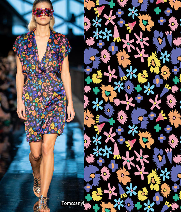 Combinando geometría, flores y texturas animales, se crean patrones audaces y llenos de personalidad, ideales para una presentación romántica de otoño e invierno. Estos diseños rompen fácilmente con la imagen tradicional de monotonía y seriedad de estas estaciones, transmitiendo madurez, estabilidad, valentía, rebeldía y fortaleza. Los motivos florales aportan una sensación de romanticismo encantador y serenidad, mientras que la combinación de cuadros añade una sensación de capas y tridimensionalidad. Además, la geometría artística con colores vibrantes refleja una vitalidad sencilla sin perder estilo.