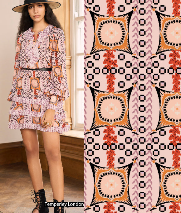 Combinando geometría, flores y texturas animales, se crean patrones audaces y llenos de personalidad, ideales para una presentación romántica de otoño e invierno. Estos diseños rompen fácilmente con la impresión de monotonía y seriedad típicas de estas estaciones, transmitiendo madurez, estabilidad, valentía, rebeldía y fortaleza. Los motivos florales aportan una sensación de romanticismo encantador y serenidad, mientras que la combinación de cuadros añade una sensación de capas y tridimensionalidad. Además, la geometría artística con colores vibrantes refleja una vitalidad sencilla sin perder el estilo.