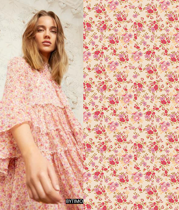 Con la moda y la elegancia como tema central, se toma la inspiración de patrones artísticos de colores contrastantes. Esta propuesta fusiona estampados llamativos y abstractos, dibujados a mano, incorporando elementos de tendencia como flores y figuras geométricas distintivas. Los detalles son minuciosos, y los colores vivos iluminan el diseño, aportando energía y dinamismo a los patrones florales. Rompe con la monotonía visual tradicional, presentando una estética simple pero poderosa. En su simplicidad refinada, añade una elegancia moderna, mientras que el impacto visual destaca un estilo romántico e intelectual, aportando un toque de sofisticación y modernidad a los patrones florales.