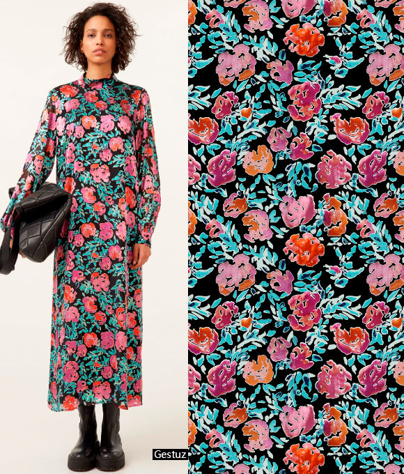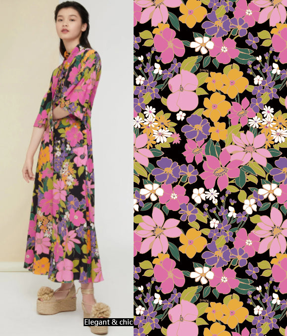 Con un enfoque en la moda y la elegancia como tema central, se combinan patrones artísticos de colores contrastantes como inspiración para el diseño. La propuesta fusiona estampados llamativos y abstractos, dibujados a mano, utilizando elementos populares distintivos como flores y geometría. Los detalles están meticulosamente elaborados, con colores vibrantes que iluminan el diseño, añadiendo dinamismo a los patrones florales. Rompe la monotonía visual tradicional, ofreciendo una estética simple pero poderosa. En la simplicidad y precisión del diseño se suma la elegancia moderna, mientras que el impacto visual refleja un estilo romántico e intelectual, aportando un aire moderno y sofisticado a los patrones florales.