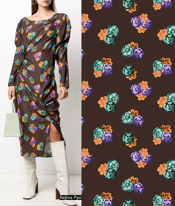 Las flores texturizadas que cubren todo el vestido florecen libremente, como una pintura al óleo tranquila y hermosa. Las delicadas y complejas líneas delinean pétalos elegantes, complementados por una cuidadosa paleta de colores que se despliega de manera natural, danzando en un romántico resplandor vintage. Tanto los patrones como los colores están llenos de carácter, mientras que las flores, complejas y minuciosas, presentan un estilo único y una sensación artística suave y armoniosa.