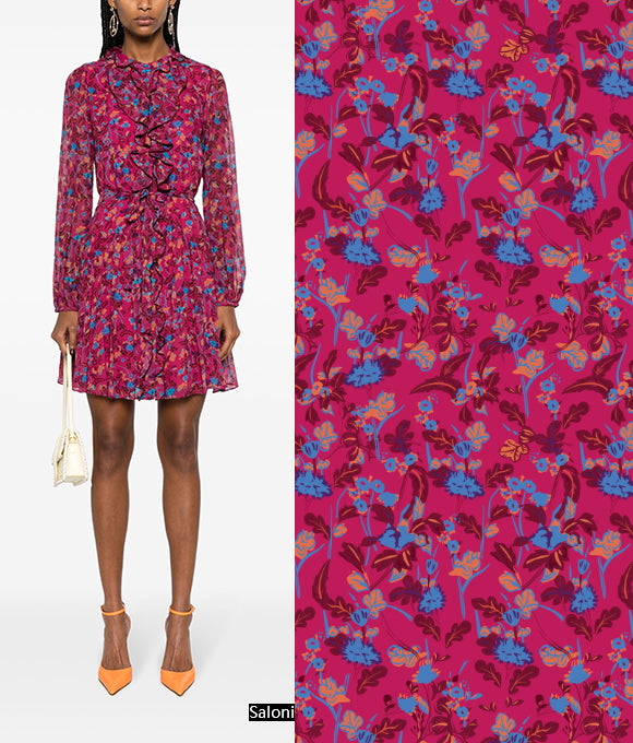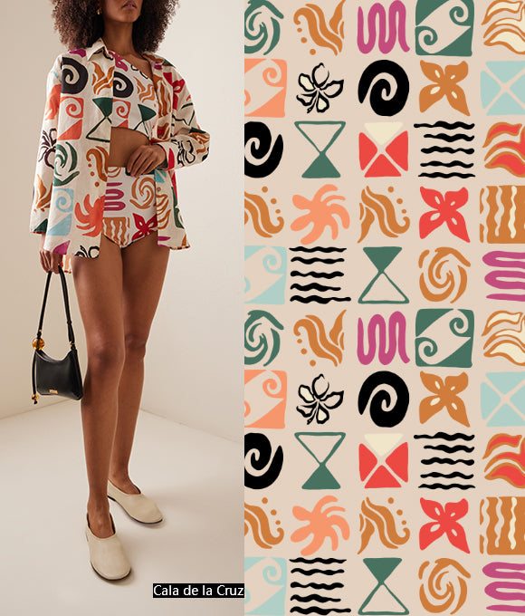 "Con el tema de la moda y la elegancia como punto de partida, y combinando patrones artísticos de colores contrastantes como inspiración para el diseño, se fusionan llamativos y abstractos estampados hechos a mano. Utilizando elementos de tendencia distintivos como flores y formas geométricas, con una gran atención a los detalles, se ilumina el diseño con colores vivos, añadiendo vitalidad a los patrones. Rompiendo la monotonía visual convencional, se logra una apariencia sencilla y elegante, que añade moda y sofisticación en su simplicidad. Con un impacto visual que resalta un estilo romántico e intelectual, se otorga a los patrones una sensación moderna y elegante."