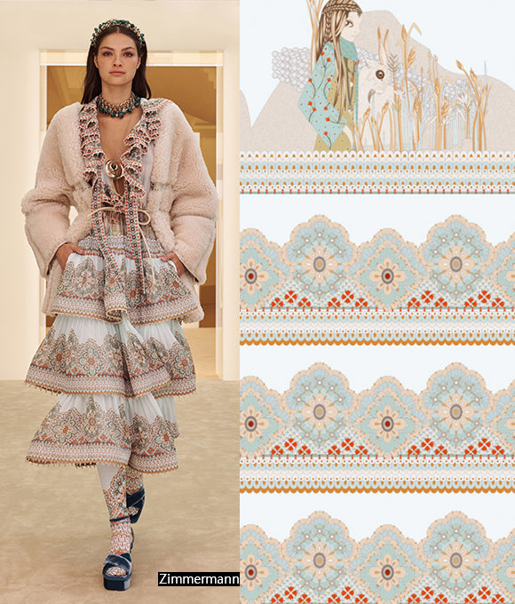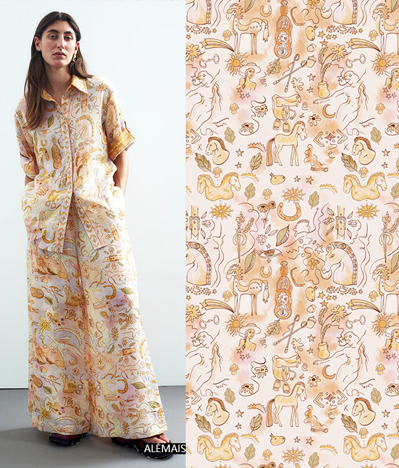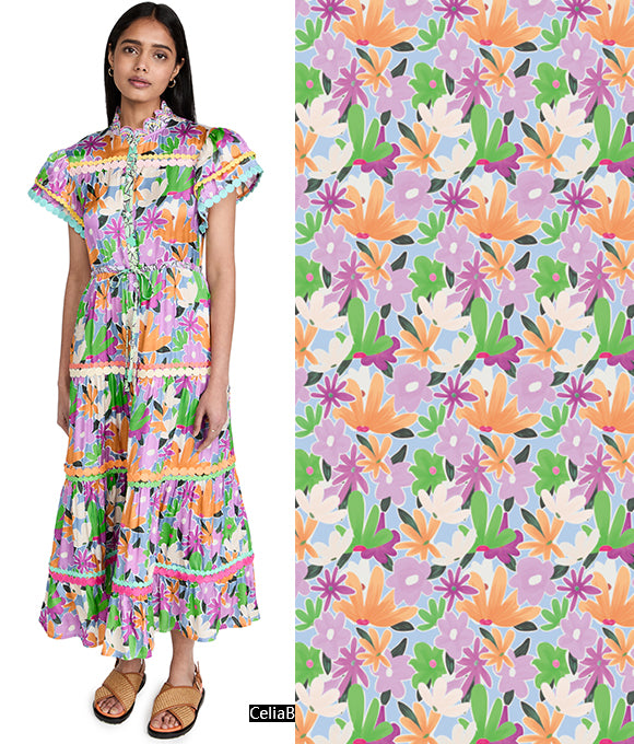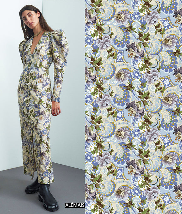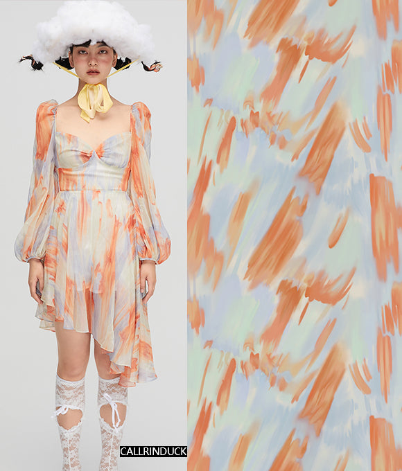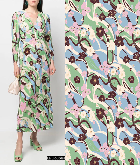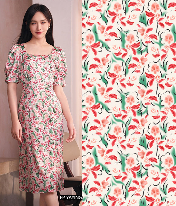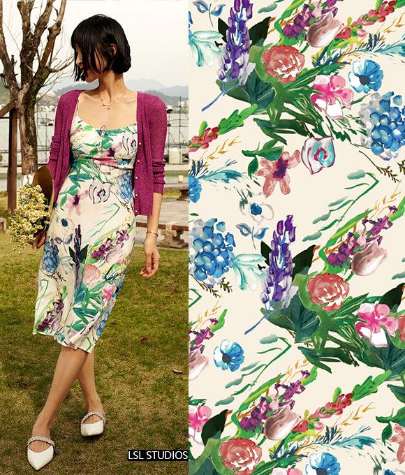 Flores texturizadas cubren toda la falda, floreciendo libremente, serenas y hermosas como una pintura al óleo. Las líneas delicadas y complejas delinean pétalos elegantes, complementados por una cuidada paleta de colores. Estas flores se despliegan de manera natural, bailando en una romántica atmósfera retro y brillante. Tanto los patrones como los colores tienen un fuerte sentido del estilo, y las flores complejas y detalladas presentan un tono único y una sensación artística suave.