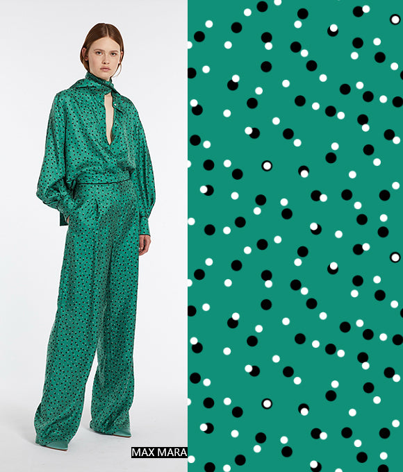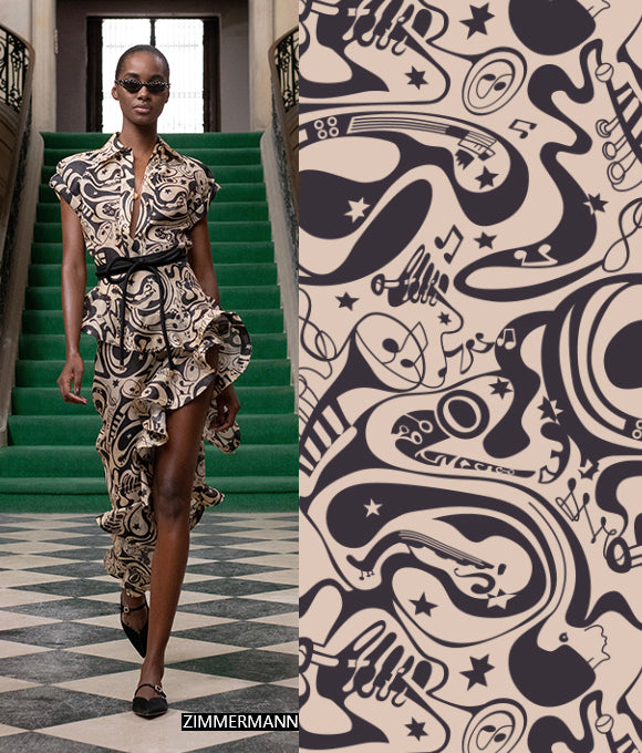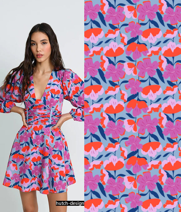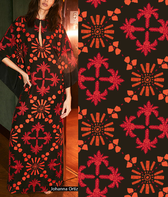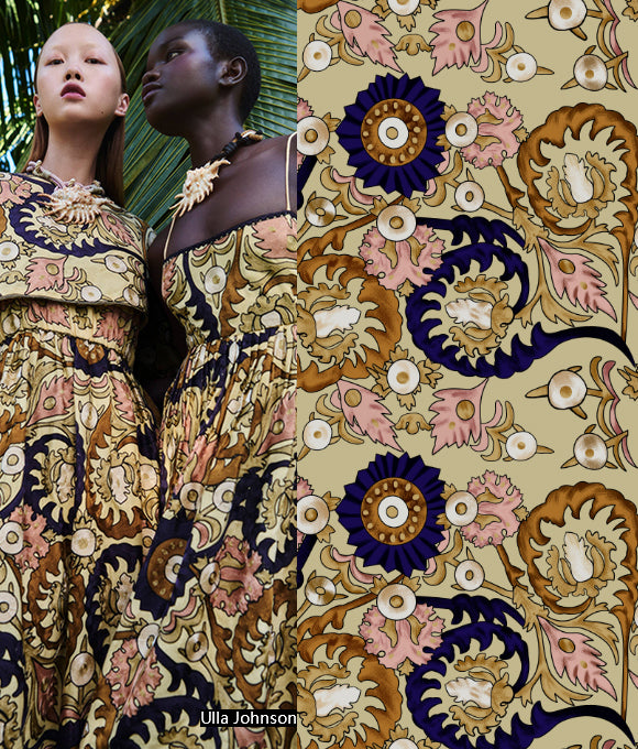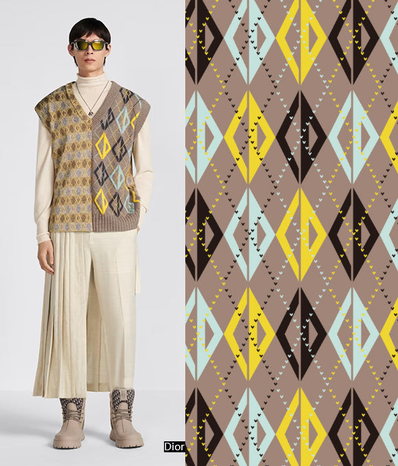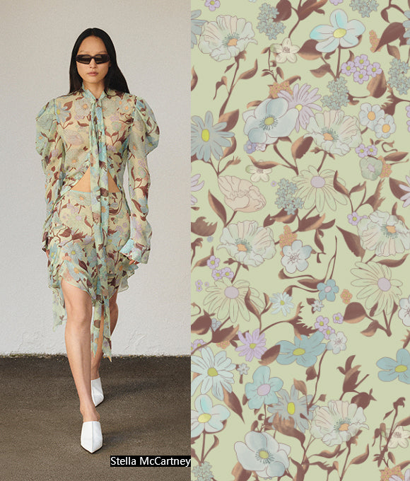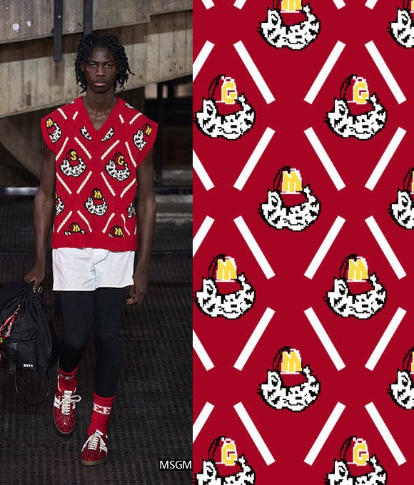 "Estampados exuberantes y magníficos, combinados con patrones a cuadros y texturas en un fondo que crea una sensación de capas, con un impacto visual de alta gama que es muy convincente, sin ser exagerado sino aumentando el efecto visual. La elección de colores también es muy cuidadosa, con colores primarios como rojo, amarillo, azul y verde, brillantes, retro y románticos. No solo aporta una sensación de despreocupación y ocio casual que añade un toque de libertad, sino que también mejora la elegancia moderna, interpretando tanto la pereza como la nobleza."