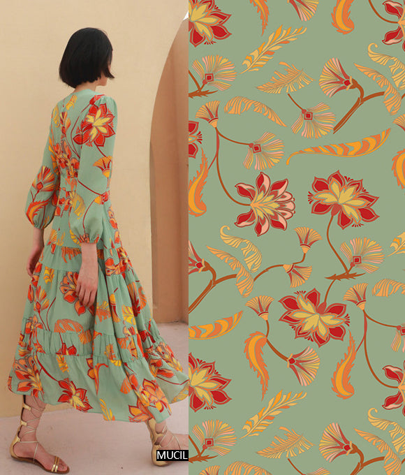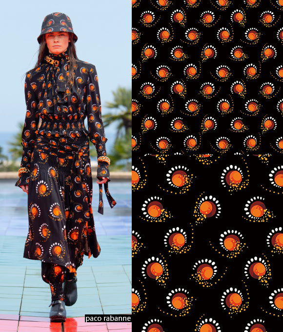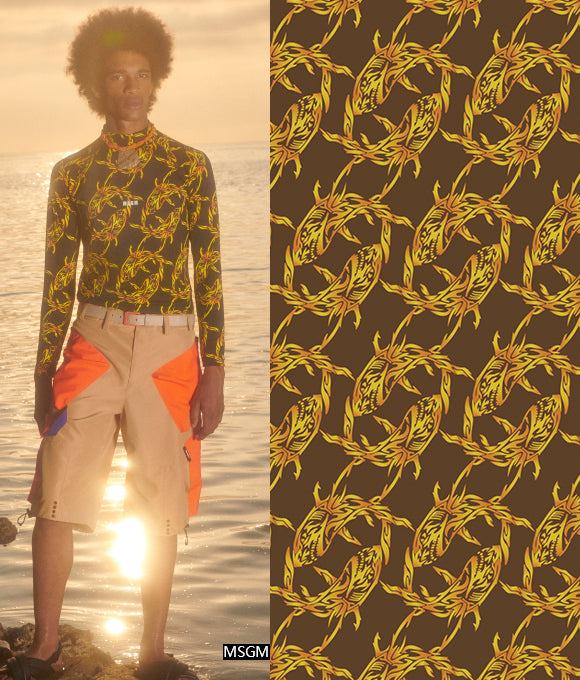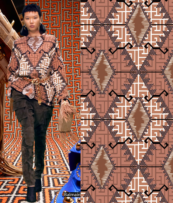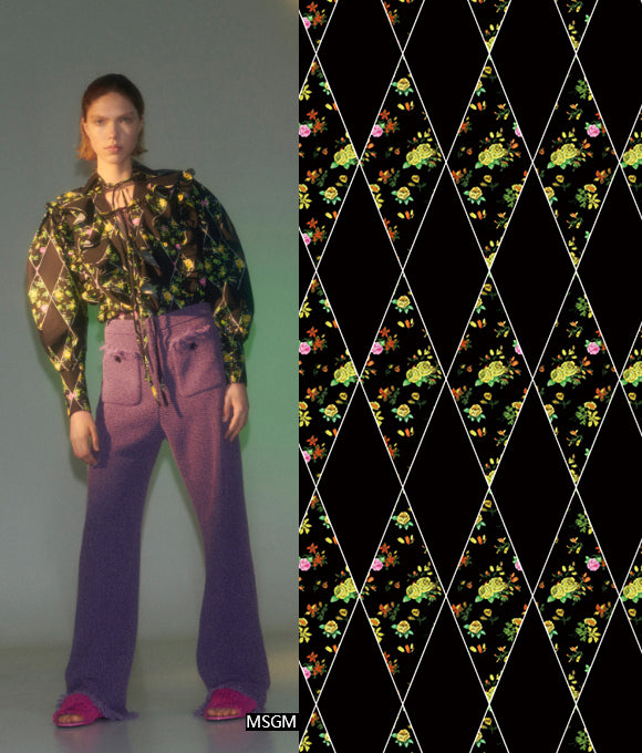 Combinando elementos geométricos, florales y texturas animales, se crean patrones audaces y llenos de personalidad, que ofrecen una exhibición otoñal e invernal con un fuerte sentido del romanticismo. Rompen fácilmente con la impresión tradicional de otoño e invierno como temporadas sombrías y serias, mientras transmiten madurez, estabilidad, valentía, rebeldía y fuerza. Las flores aportan una sensación de romanticismo encantador y una tranquila elegancia, mientras que los cuadros agregan capas y dimensión, y las formas geométricas artísticas, con colores vibrantes, expresan simplicidad, energía y estilo sin perder sofisticación.