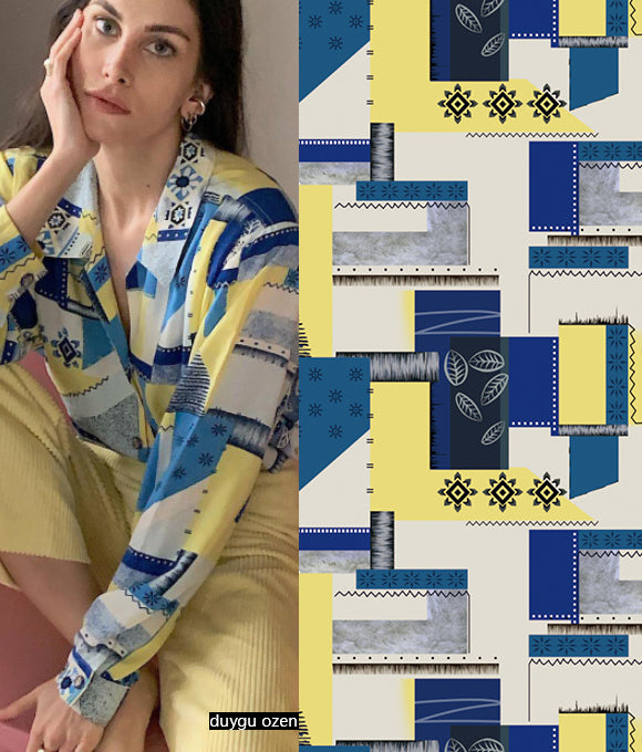 Con el tema de la moda y la elegancia como eje central, se utilizan patrones artísticos de colores contrastantes como fuente de inspiración. Se fusionan estampados dibujados a mano llamativos y abstractos, junto con elementos de moda como flores y formas geométricas, llenos de detalles. Los colores vibrantes revitalizan el diseño, aportando energía a los patrones florales. Rompiendo con la monotonía y rigidez visual convencionales, el estilo es simple y elegante. En su sencillez y limpieza, se añade un toque de elegancia y moda. El impacto visual destaca un estilo romántico e intelectual, añadiendo una sensación de modernidad y elegancia a los patrones florales.
