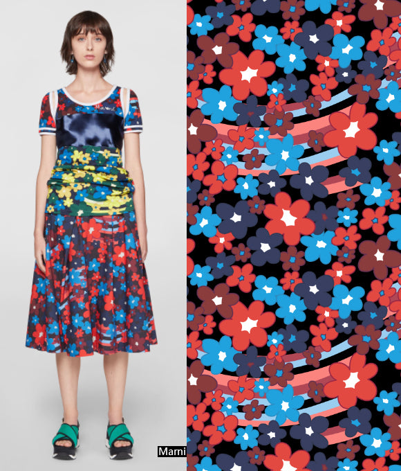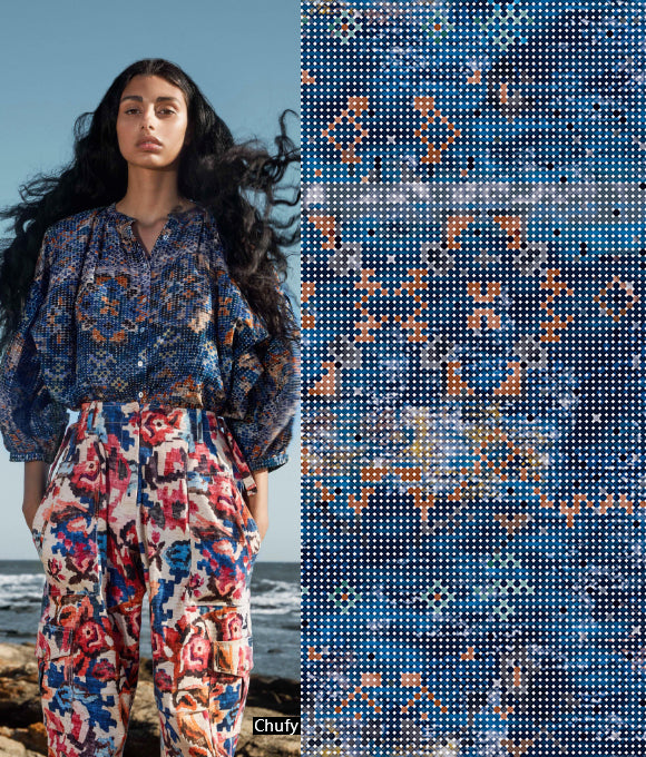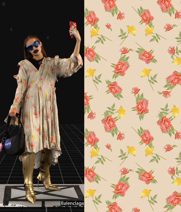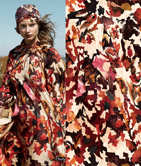 La combinación de geometría, flores y texturas animales crea patrones audaces y únicos, siendo una exhibición de otoño e invierno llena de romanticismo. Rompe fácilmente la impresión tradicional de la monotonía y seriedad de estas estaciones, mientras transmite una sensación de madurez, estabilidad, valentía, rebeldía y fuerza. Las flores aportan una sensación maravillosa de romanticismo y tranquilidad, mientras que la combinación de cuadros añade una sensación de profundidad y tridimensionalidad. Además, la geometría artística de colores vibrantes refleja una simplicidad energética sin perder elegancia y estilo.