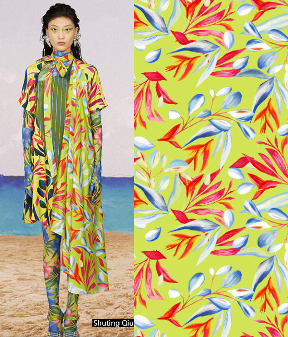 Patrones de plantas y flores, con un carácter único y personal. Las pinceladas combinan lo real y lo abstracto, creando formas vívidas y llenas de vida. Los colores brillantes se utilizan de manera audaz, simbolizando la fuerza de la vitalidad y la luz. El estilo transmite una sensación de libertad y frescura. La fusión de un estilo campestre fresco con el romanticismo francés, junto con pétalos irregulares que parecen moverse con el viento, crean un ambiente vibrante y soleado. Este diseño evoca un estilo de vacaciones relajado, impregnado de un marcado sabor moderno y artístico.
