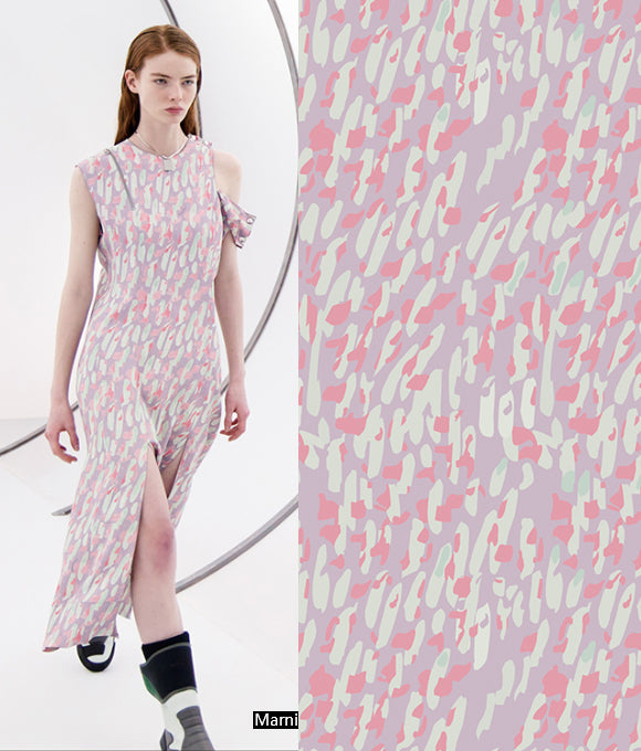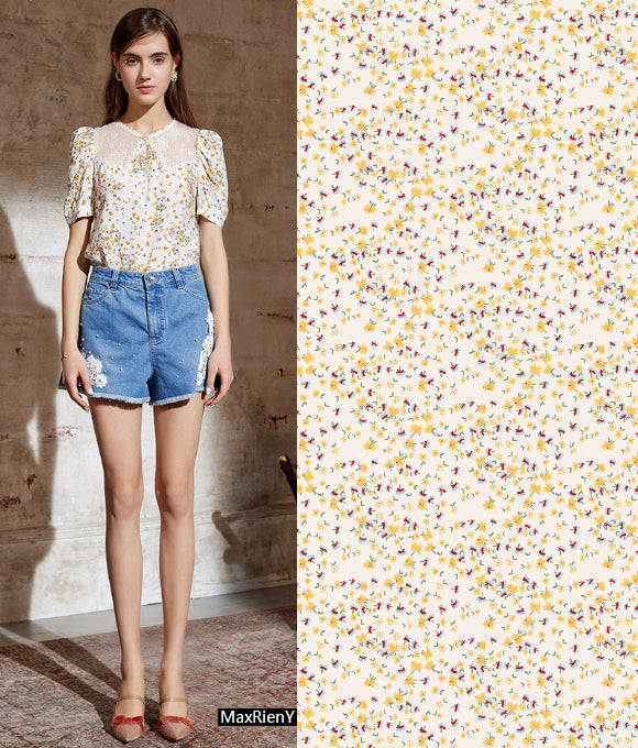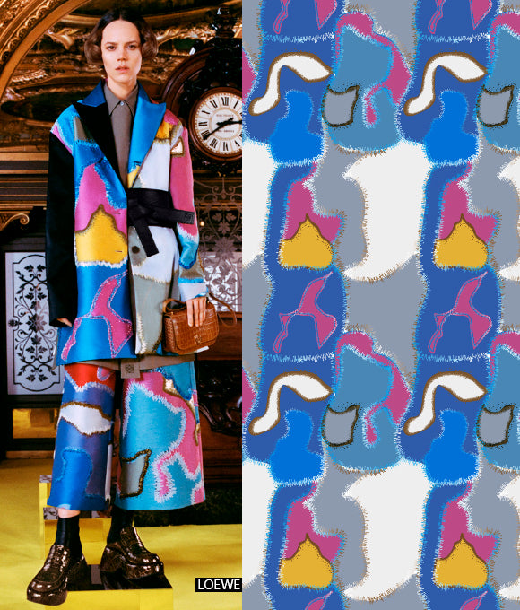 Los estampados exuberantes y ricos se combinan con cuadros y texturas, creando una sensación de capas en el fondo, lo que ofrece un fuerte impacto visual sin parecer exagerado, sino que, por el contrario, enriquece el efecto visual. La combinación de colores es meticulosamente elegida, con el uso de los colores primarios estéticos como el rojo, amarillo, azul y verde, que aportan un aire brillante, vintage y romántico. Este diseño no solo transmite una sensación de relajada y despreocupada libertad, sino que también eleva la elegancia moderna. Logra un equilibrio entre la pereza elegante y el refinamiento, capturando ambos aspectos con gran estilo.