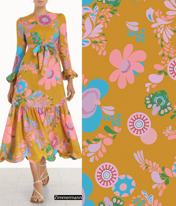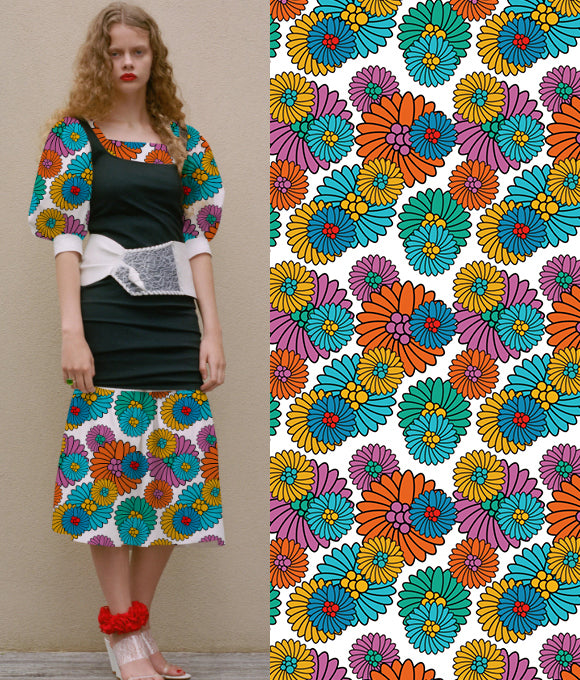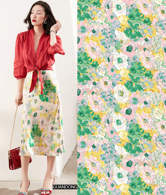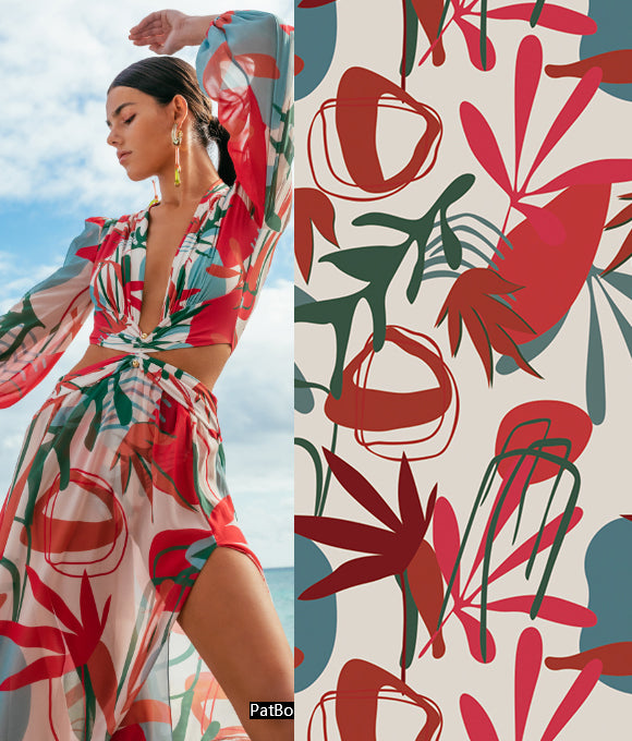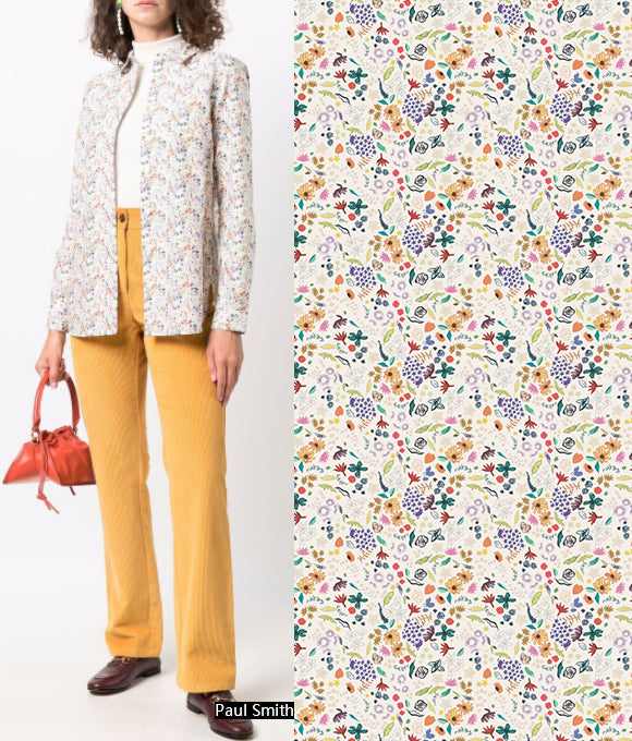 Los estampados exuberantes y ricos, combinados con cuadros y texturas en la base, crean una sensación de capas. El impacto visual es impresionante y muy contagioso, sin parecer exagerado, sino que aumenta el efecto visual. La paleta de colores también está cuidadosamente seleccionada, utilizando los colores primarios estéticos como el rojo, amarillo, azul y verde como tonos principales, con un toque brillante, retro y romántico. No solo aporta una sensación de relajación casual y desenfadada que agrega una connotación de libertad, sino que también eleva el estilo moderno y elegante, interpretando tanto la pereza como la sofisticación.