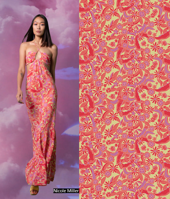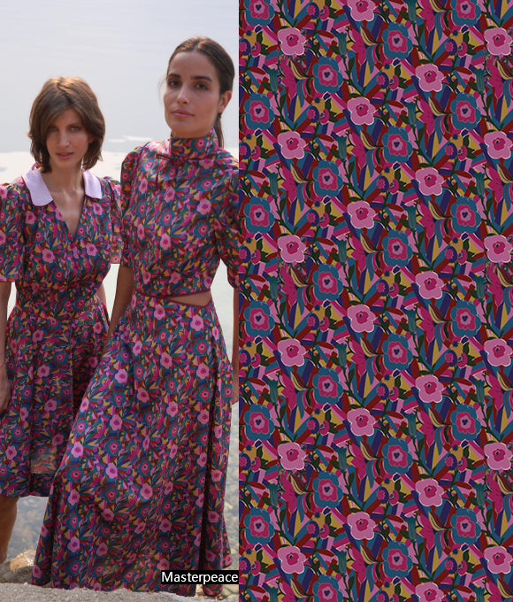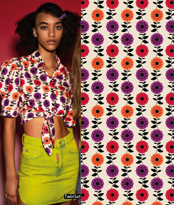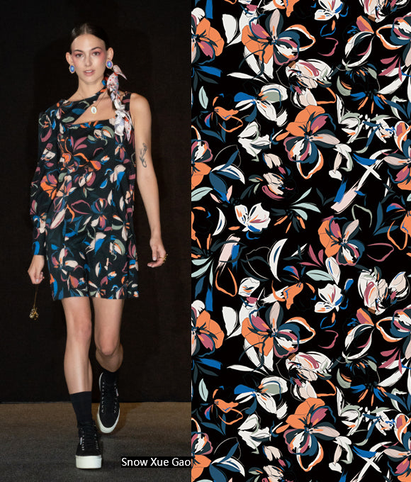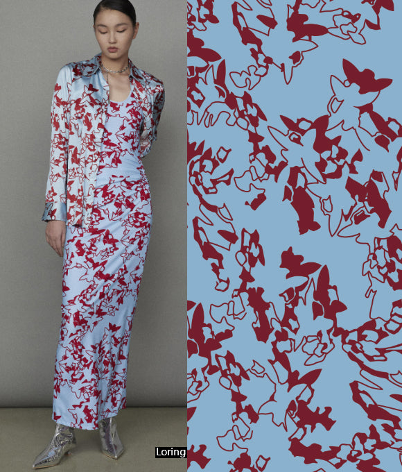 Patrones de flores, de personalidad única, con pinceladas entre lo real y lo abstracto, llenos de vida. Los colores brillantes se utilizan de manera audaz, simbolizando la fuerza de la vitalidad y la luz, desprendiendo un aire libre y elegante. Se combina la frescura del campo con el romanticismo francés, con pétalos irregulares que parecen moverse suavemente con el viento, radiantes y luminosos. La estética refleja un estilo vacacional relajado y placentero, impregnado de un fuerte toque moderno y una intensa sensación artística.