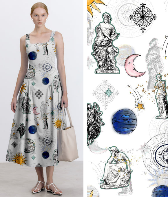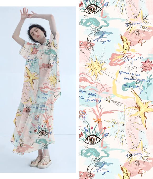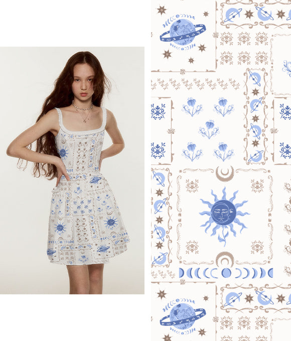 El tema "占星物语" (Cuentos de Astrología) en Mihuì se inspira en el creciente interés de la Generación Z y los Millennials por el espacio y la naturaleza, integrando patrones astrológicos y naturales de manera innovadora y personalizada. Este tema es ideal para crear estampados y decoraciones que evocan la magia del cosmos, ofreciendo una conexión profunda con el universo.