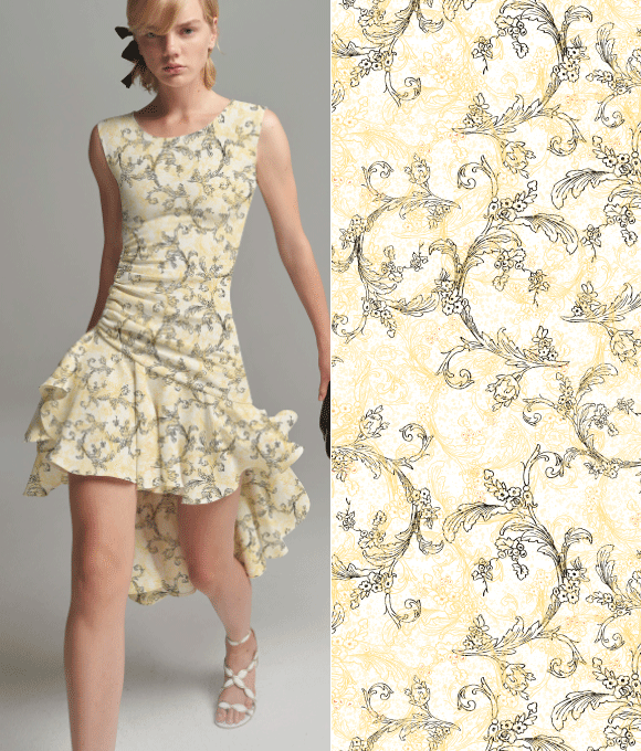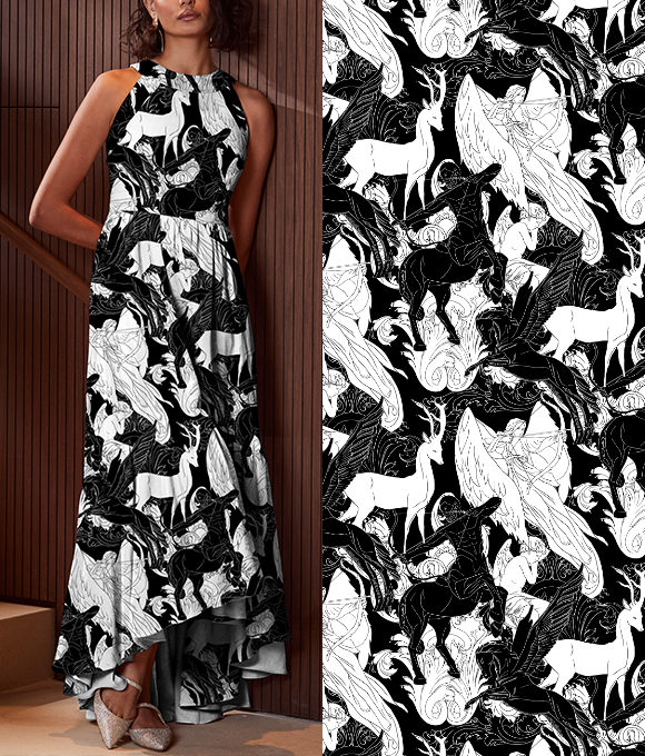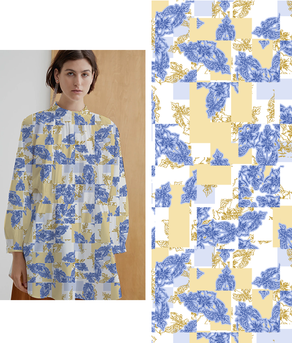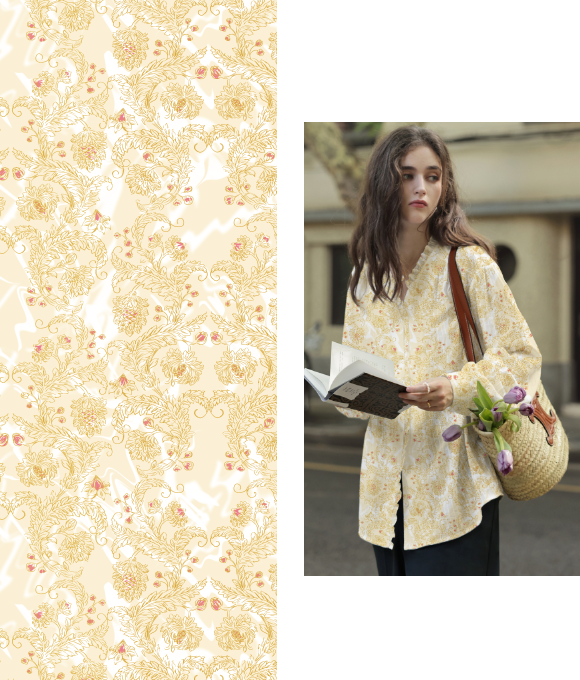 Con un tema de moda y elegancia como base, el diseño se inspira en patrones artísticos de colores contrastantes, fusionando estampados abstractos y llamativos hechos a mano. Utiliza elementos de moda como flores y formas geométricas para añadir un sentido de detalle y vitalidad al diseño con colores vivos. Rompe con la monotonía visual habitual, ofreciendo una estética simple y sofisticada que incrementa la elegancia y la modernidad. El impacto visual resalta un estilo romántico e intelectual, añadiendo una sensación de modernidad y elegancia a los patrones florales