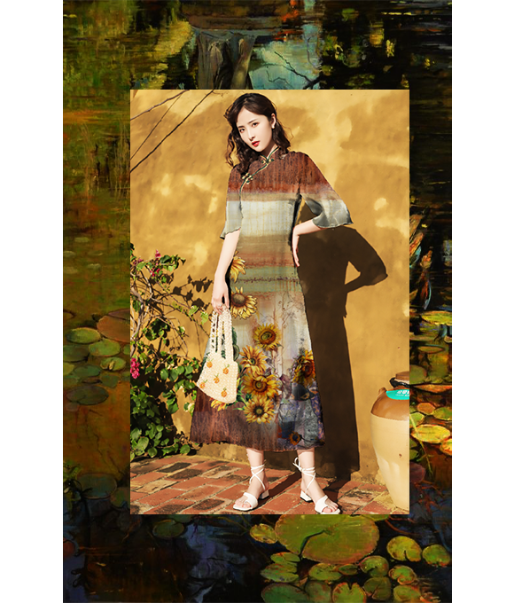 Un estilo retro intenso, como el frescor de principios de primavera. Los patrones sobre la seda, tanto en tonos como en detalles, muestran una personalidad única: ni exagerada, ni llamativa, ni vulgar. Crean una atmósfera de vestimenta relajada y cómoda, especialmente adecuada para un look casual y agradable.