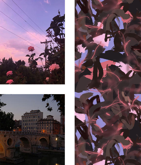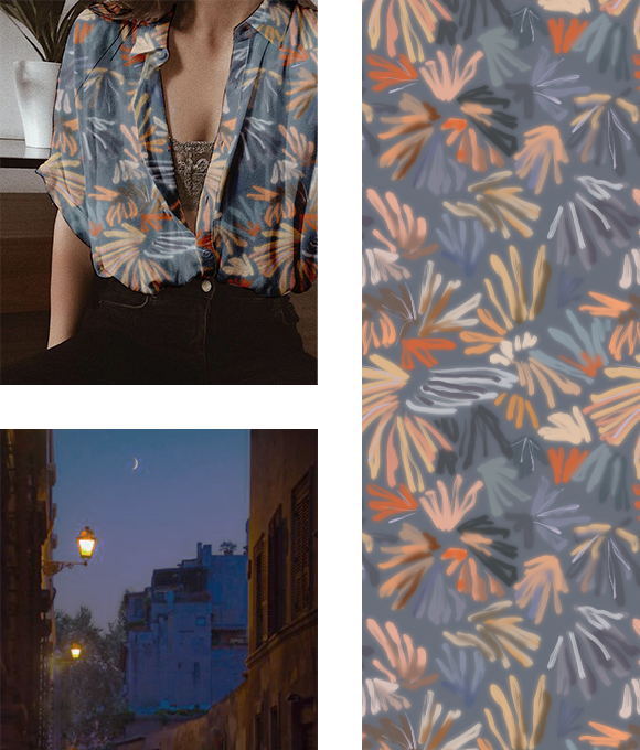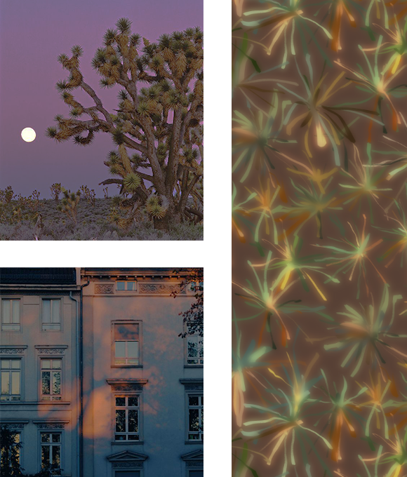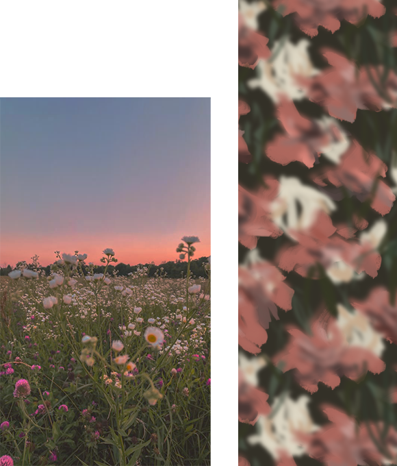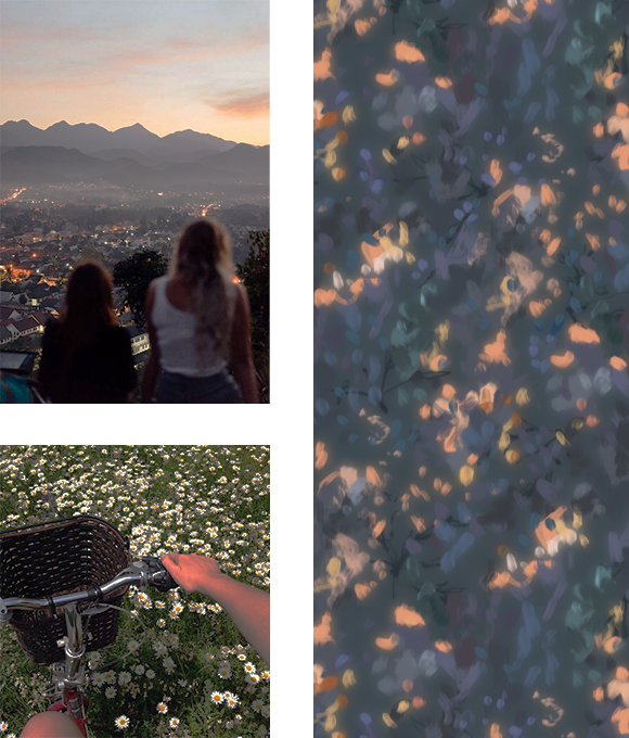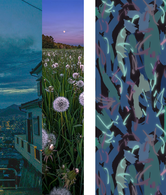 A mediados del verano, al caer la noche, el cielo se oscurece sin estar completamente negro, y todo queda envuelto en una tenue niebla. Todo está a punto de sumirse en la calma, llevándose consigo los leves rastros que quedan bajo los últimos rayos del sol.