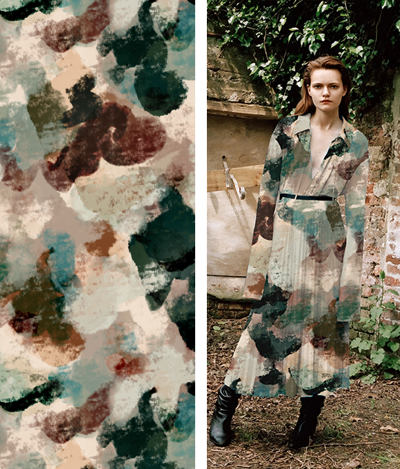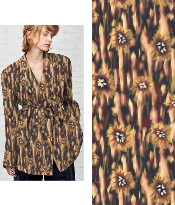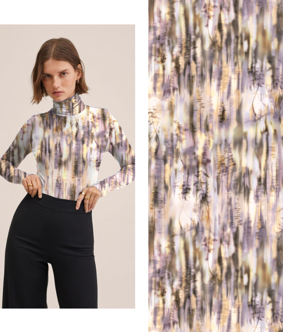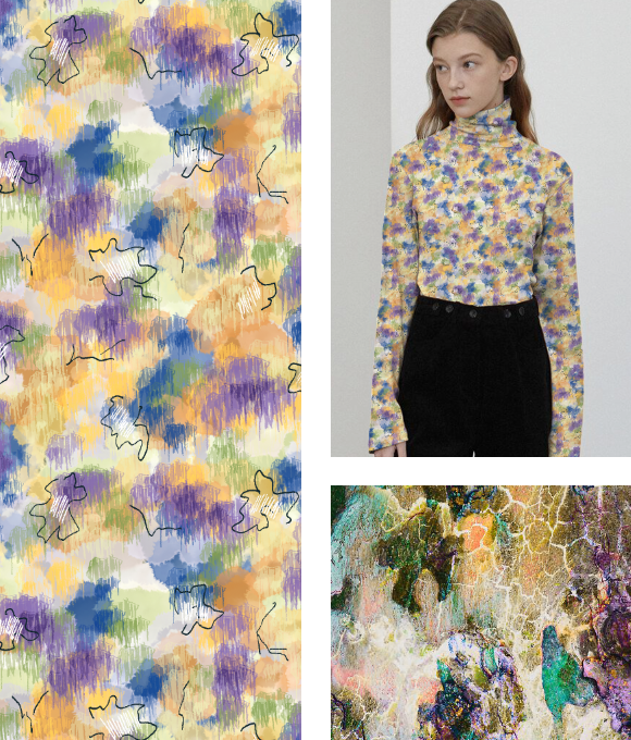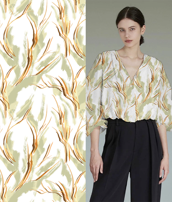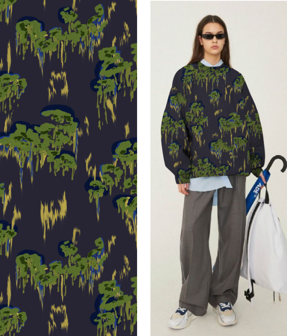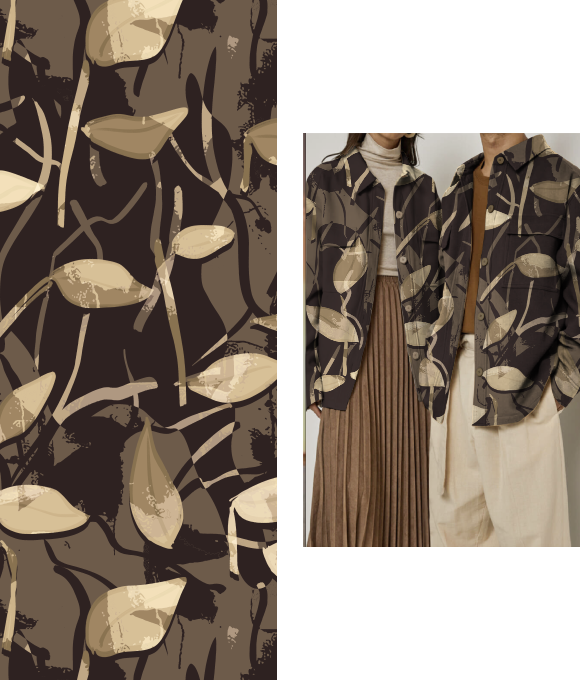 El tema "Elementos del Pantano" se centra en la misteriosa belleza y la rica biodiversidad de los pantanos, fusionando elementos naturales y abstractos para crear un ambiente enigmático y atractivo. Con la creciente influencia del diseño basado en plantas y el enfoque en la biodiversidad, los estampados se ven profundamente influenciados por la naturaleza, evolucionando hacia un estilo más oscuro y arraigado en texturas naturales.