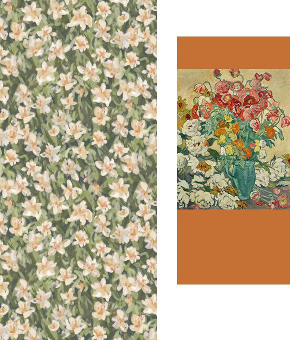 Los patrones de esta temporada son diseños originales hechos a mano, con colores intensos y pinceladas gruesas, que evocan el estilo artístico único del expresionismo, desde finales del siglo XIX hasta la actualidad.