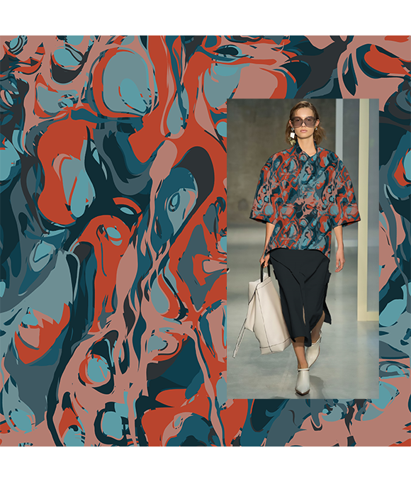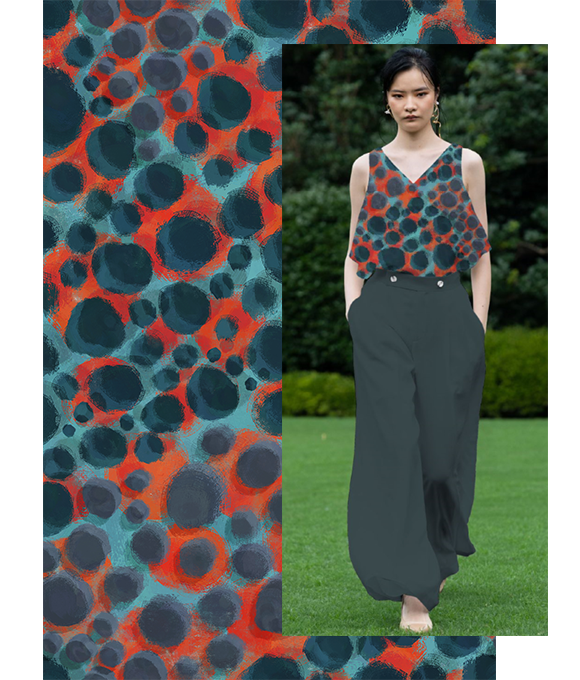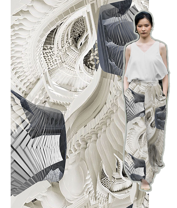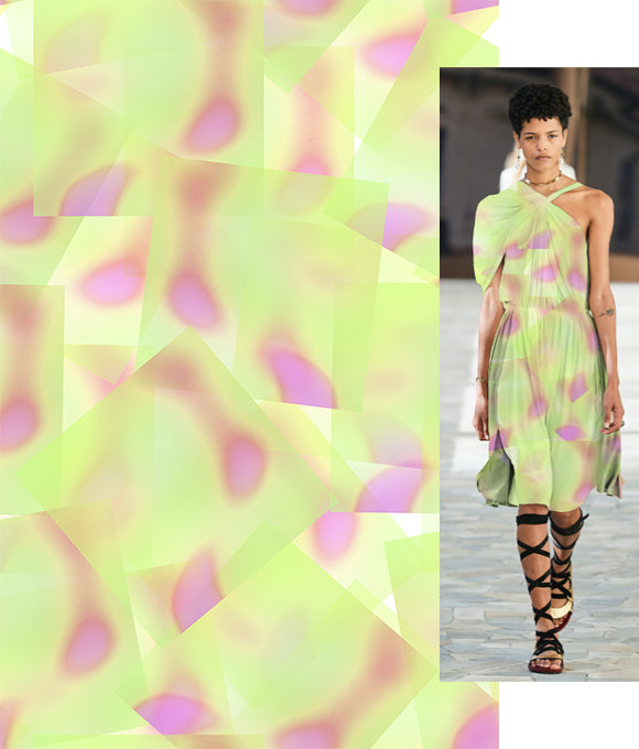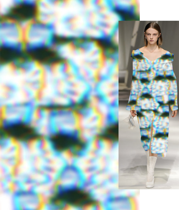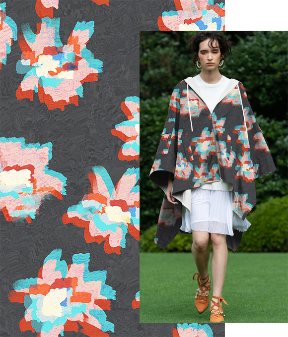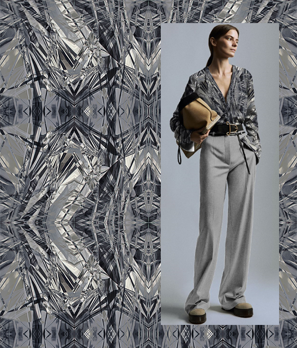 Fusionando lo exquisito con lo minimalista, se toca la línea entre lo virtual y lo real, renovando patrones tradicionales a través de una estética digital. Geometría, texturas y flores se suceden en una experiencia sensorial bajo variaciones de estilo como distorsiones, sombras superpuestas y exposiciones, creando una tendencia alucinante y vibrante.