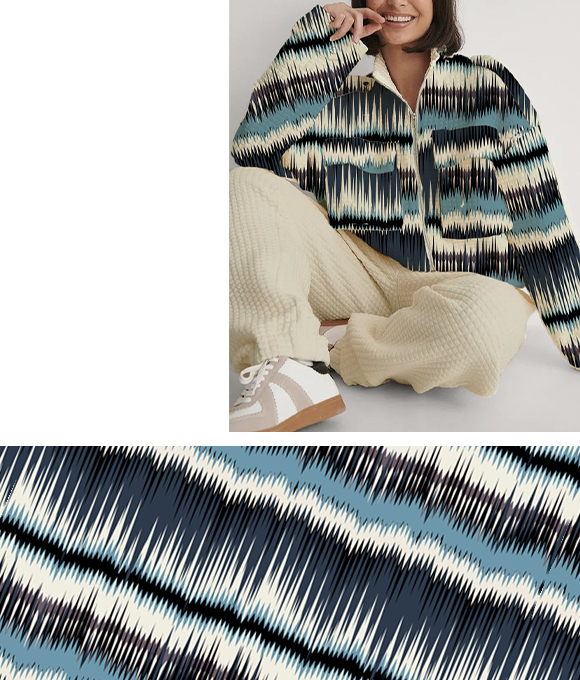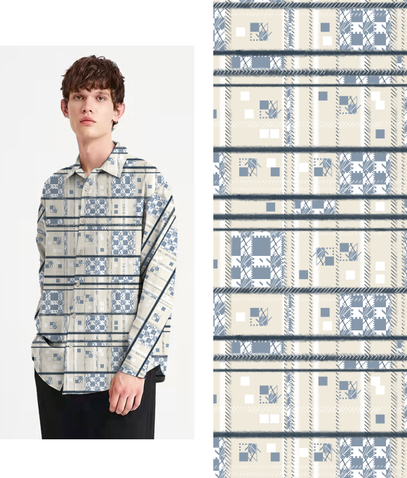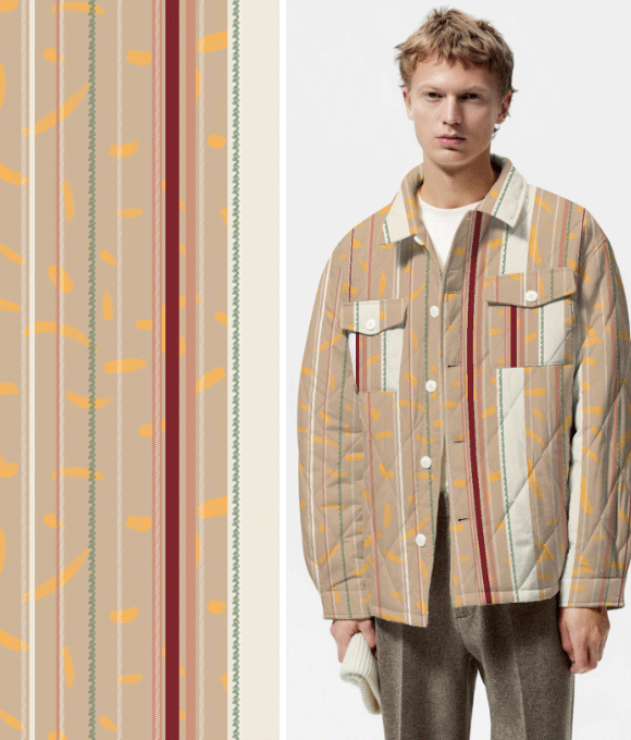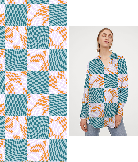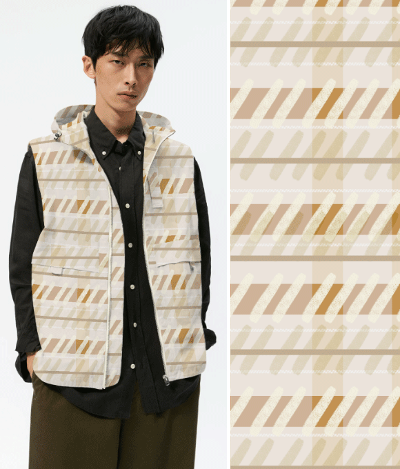 Los consumidores prefieren estampados y prendas familiares, por lo que los estilos clásicos y fundamentales mantendrán un buen desempeño en un contexto de ventas impredecible. Sin embargo, esto no significa que se deba perseguir únicamente diseños monótonos. Utilizando variaciones de patrones nuevos para transformar los cuadros, rayas y el pied de poule comerciales, se puede resaltar un estilo moderno. Se pueden intentar colores contrastantes, formas distorsionadas o diseños deconstruidos.