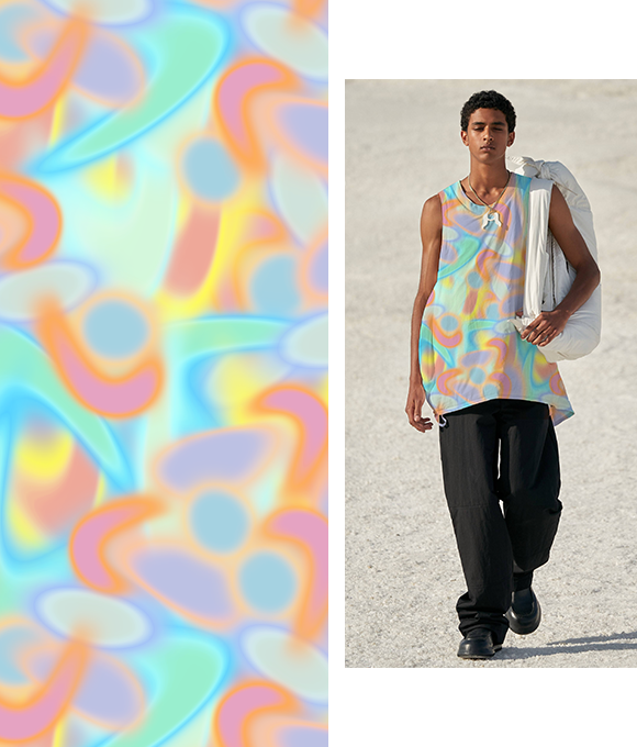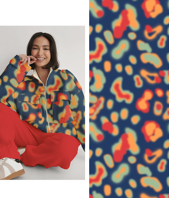 Este tema es ideal para la temporada festiva o para disfraces de reuniones virtuales. Combinado con colores fluorescentes de la petroquímica y texturas caóticas, ofrece un atractivo único. El camuflaje y los estampados animales presentan un aspecto renovado, extraño y maravilloso