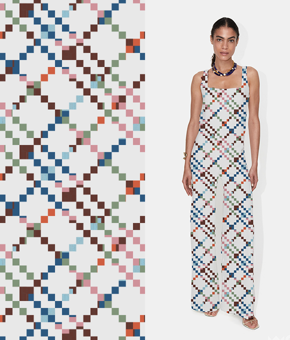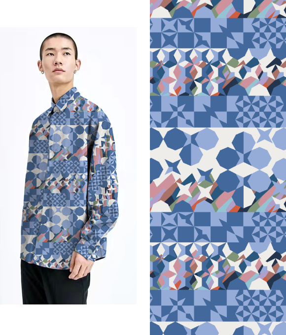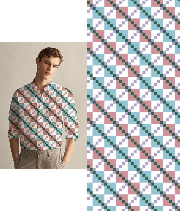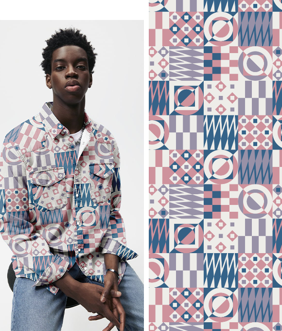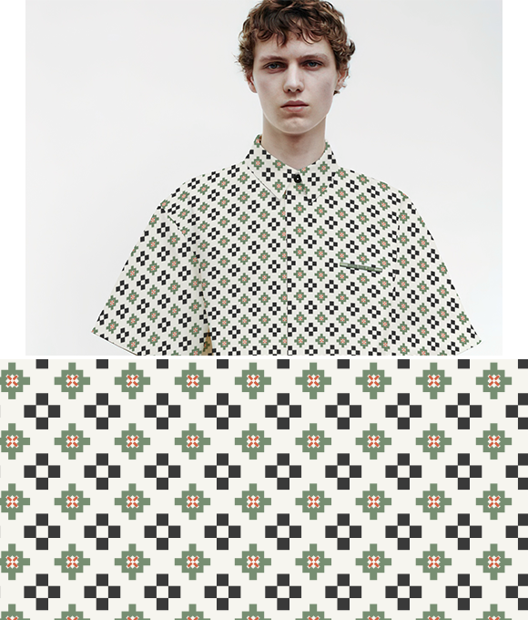 Después de varias temporadas de diseño pictórico llamativo, la tendencia de estampados en la moda masculina está regresando a los gráficos llamativos. Influenciado por el éxito de los patrones de cuadros y los diseños de ilusión óptica, este tema de patrones se actualizará en la primavera/verano de 2023 a cuadros gráficos y patrones geométricos más vanguardistas