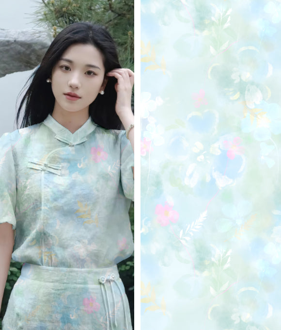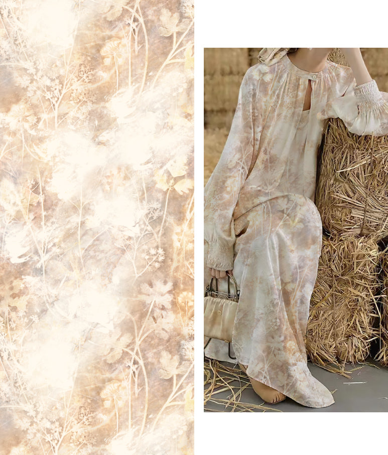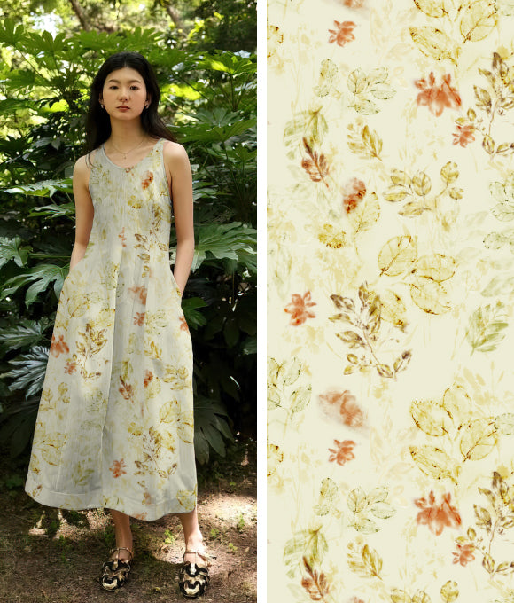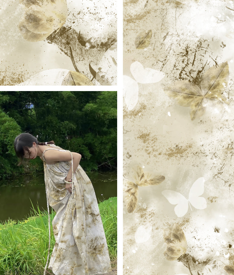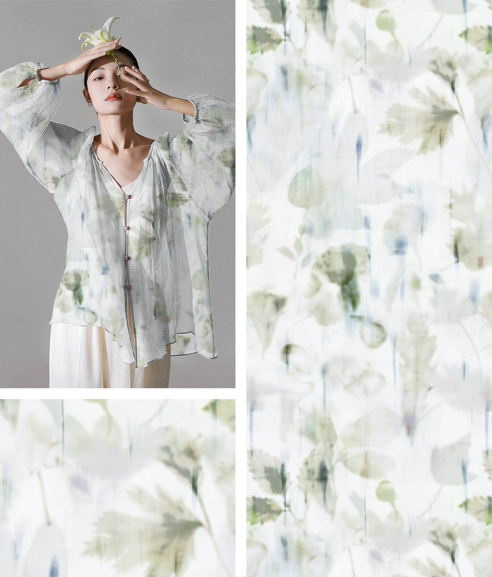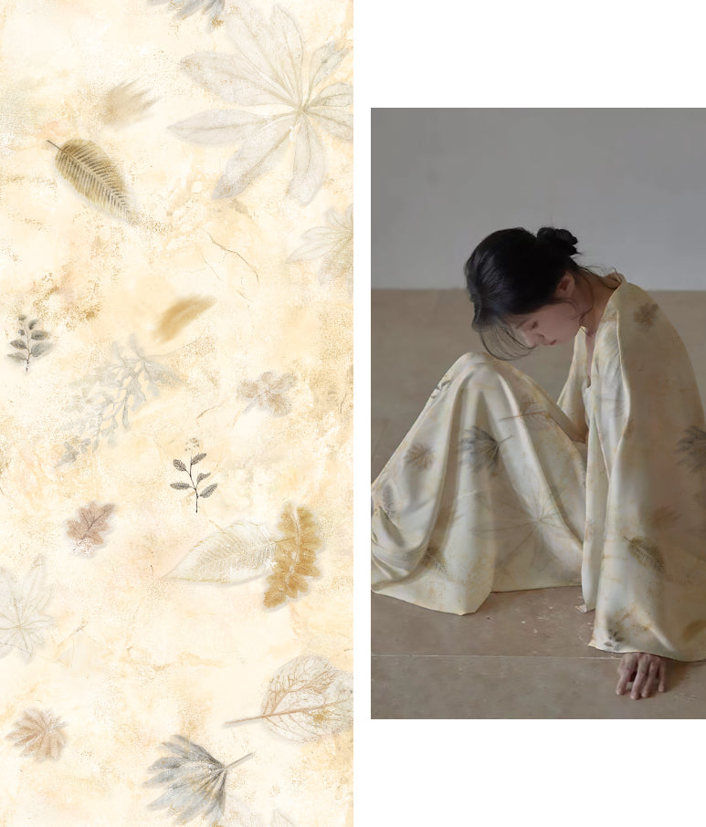 Cada diseño refleja la armonía y la belleza de la naturaleza, utilizando tonos que evocan la tierra, las plantas y el cielo. Los colores naturales, como verdes, marrones y azules, se combinan con trazos que alternan entre lo claro y lo difuso, creando una ilusión de movimiento y vida. Los estampados presentan una mezcla única de realismo y fantasía, aportando una frescura y vitalidad únicas.