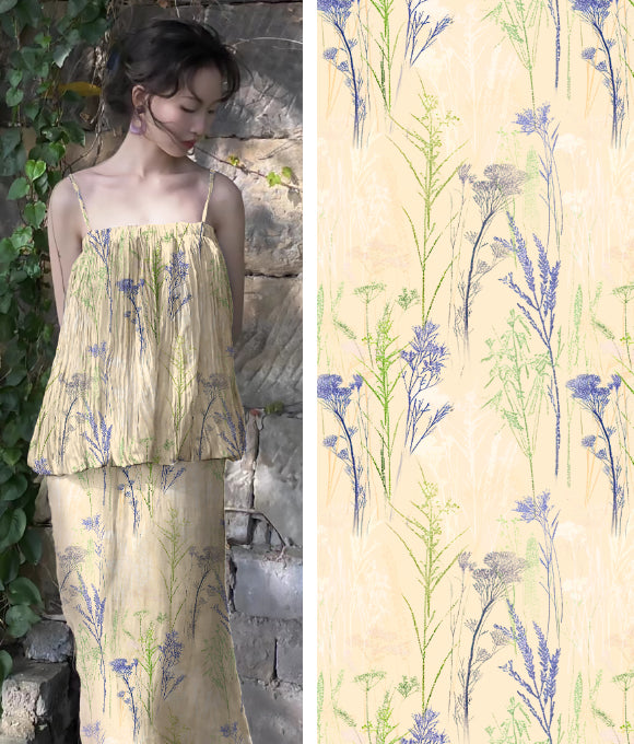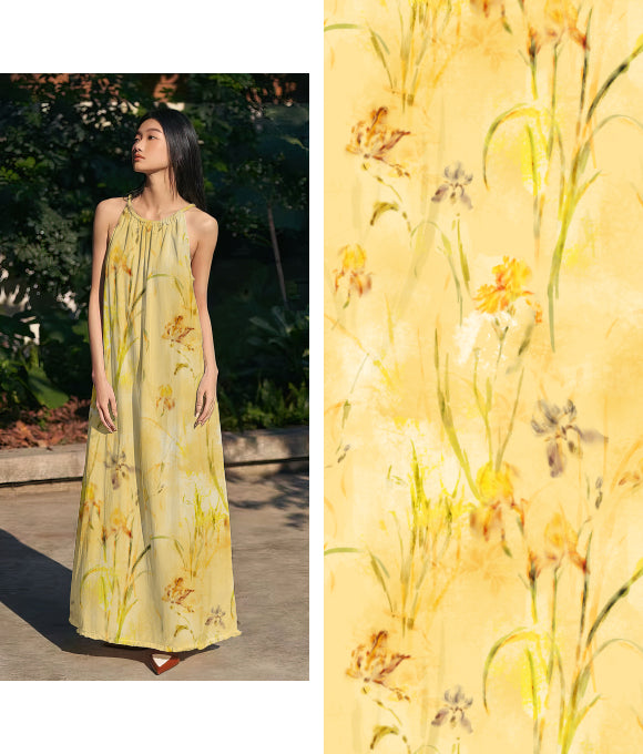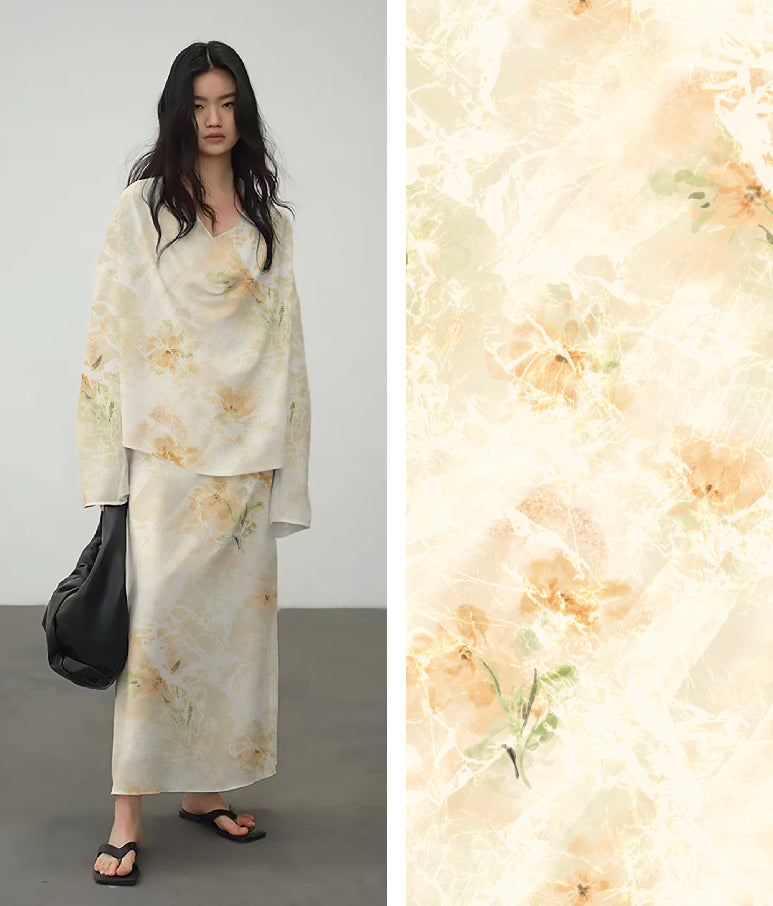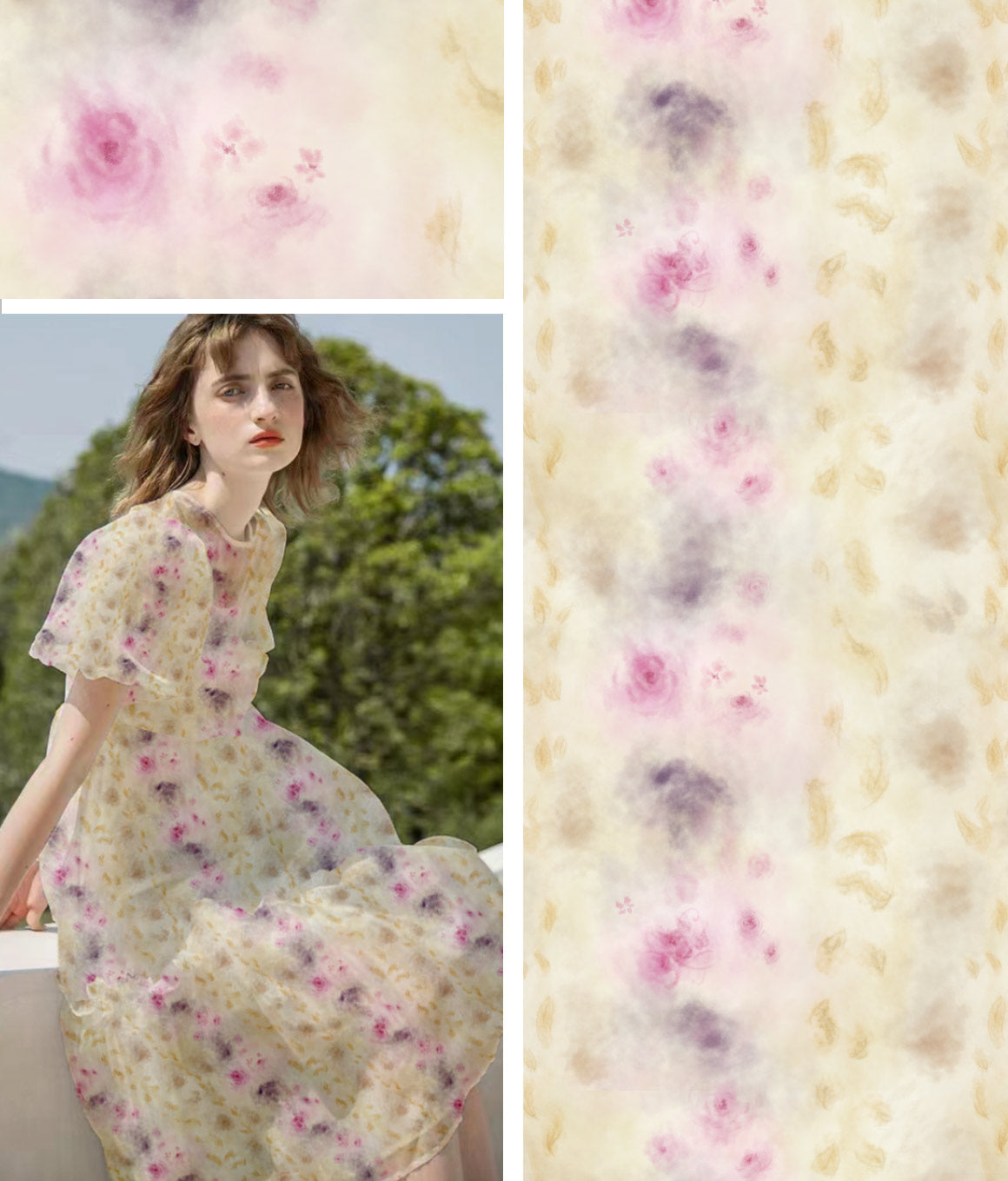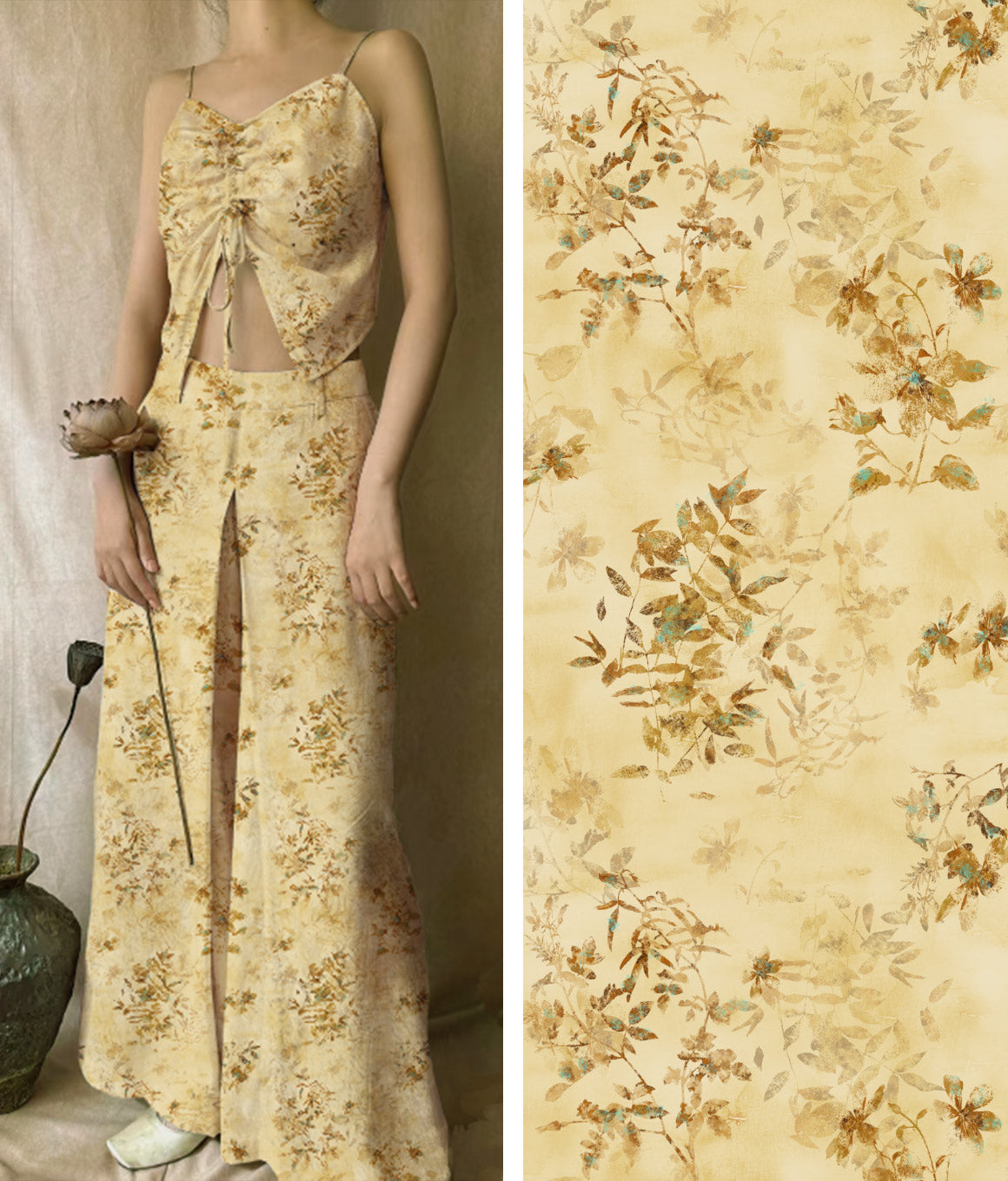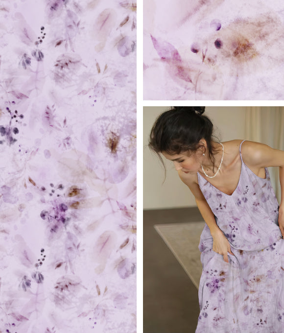 Cada diseño refleja la armonía y la belleza de la naturaleza, utilizando tonos que evocan la tierra, las plantas y el cielo. Los colores naturales, como verdes, marrones y azules, se combinan con trazos que alternan entre lo claro y lo difuso, creando una ilusión de movimiento y vida. Los estampados presentan una mezcla única de realismo y fantasía, aportando una frescura y vitalidad únicas.
