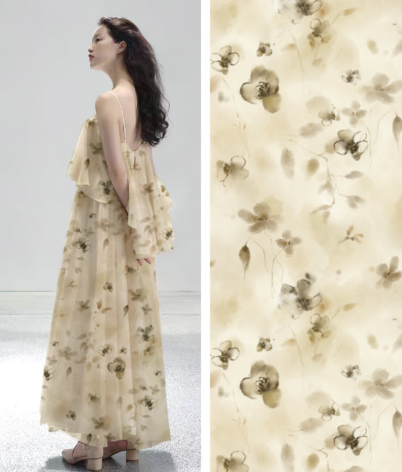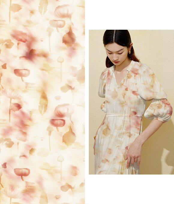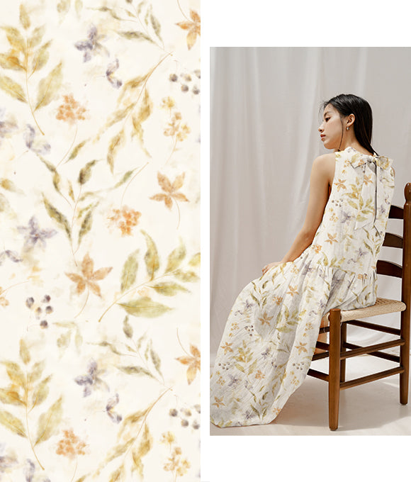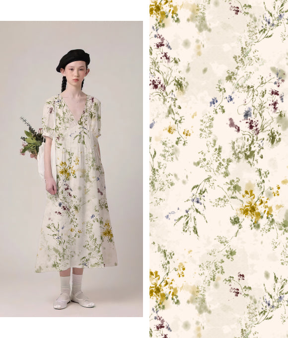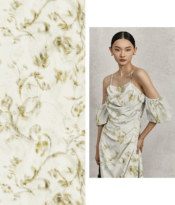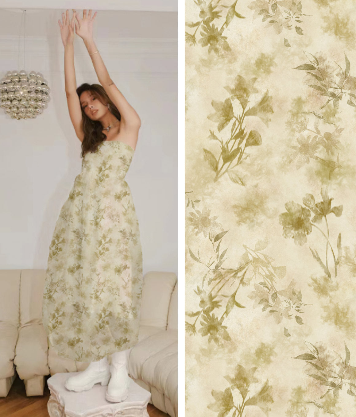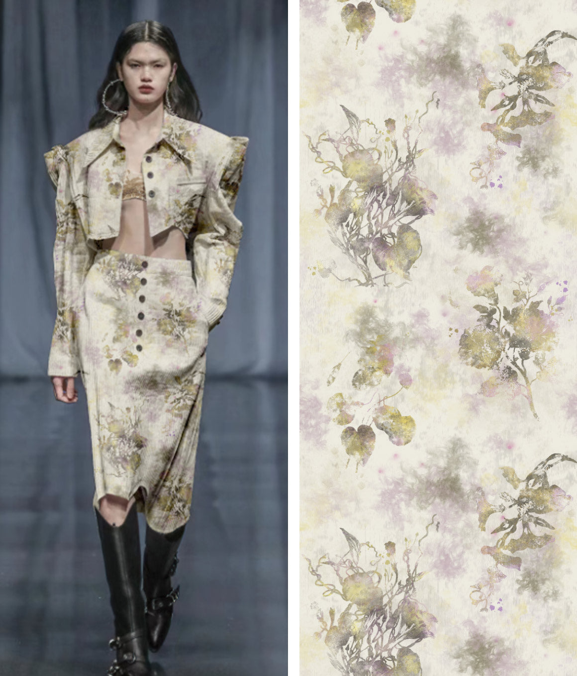La colección fusiona la frescura del estilo campestre con la elegancia romántica francesa, presentando pétalos irregulares y sutiles que parecen bailar con el viento. La estética es a la vez radiante y alegre, evocando una sensación de libertad y dinamismo. "Espectros del Follaje" combina una atmósfera de vacaciones relajadas con un fuerte sabor moderno y una rica influencia artística, ofreciendo piezas que son tanto visualmente impactantes como emocionalmente evocadoras.