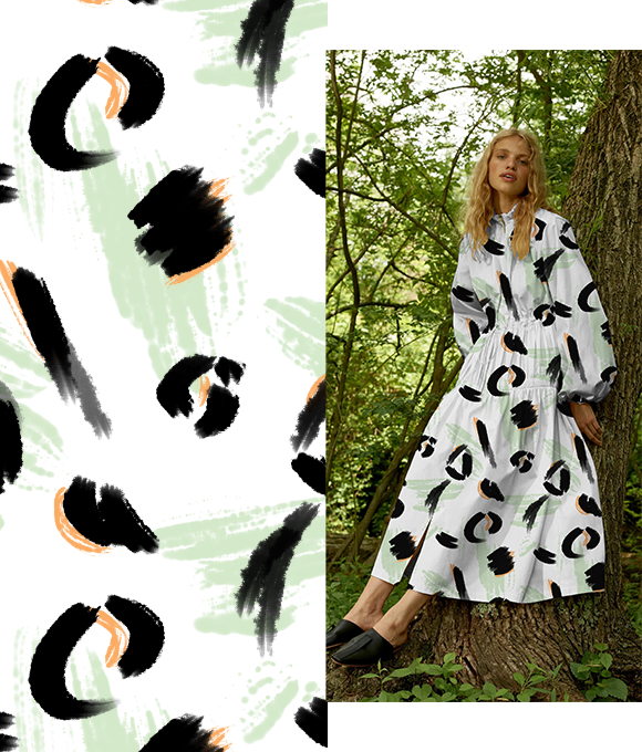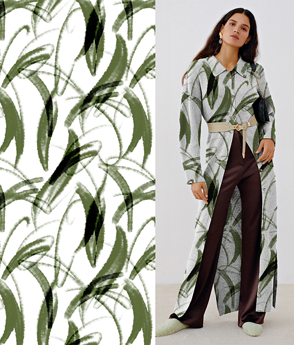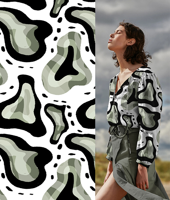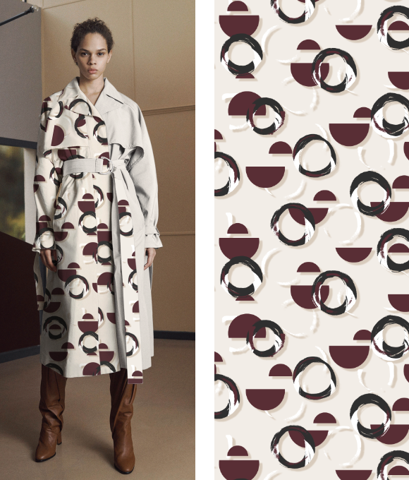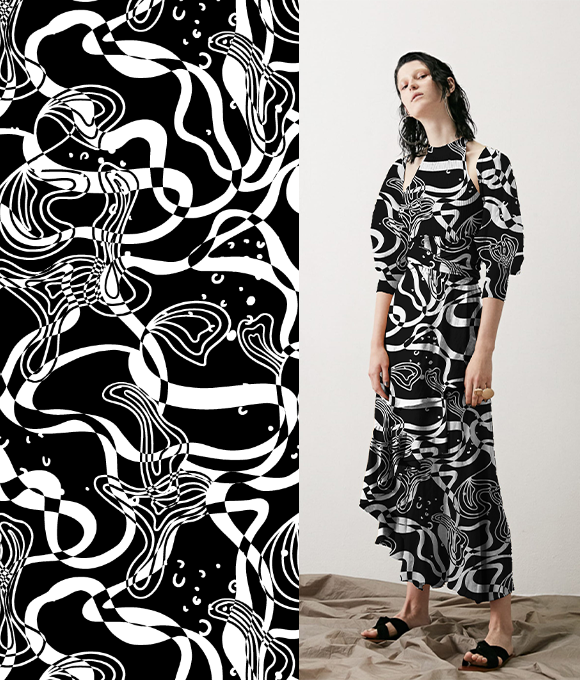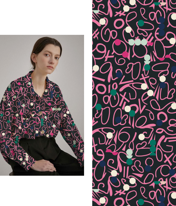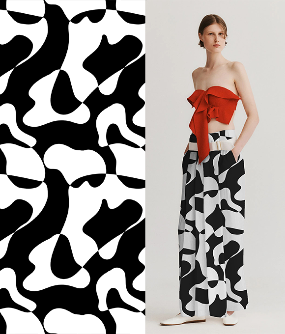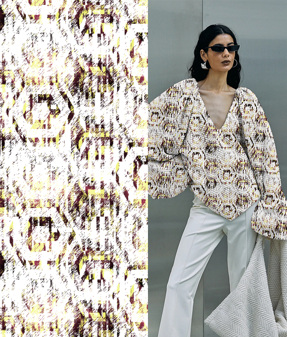 Este tema promueve un estilo discreto que se oculta tras bambalinas. En cuanto a los estampados, los diseños abstractos en blanco y negro han captado mucha atención, satisfaciendo la demanda de un estilo atemporal, que no se ve afectado por las estaciones. Este tema también impulsa el desarrollo continuo del diseño basado en datos, donde los datos complejos de esta temporada se han simplificado en símbolos y signos claros y comprensibles, evolucionando finalmente hacia un lenguaje global y elementos unificados.