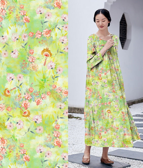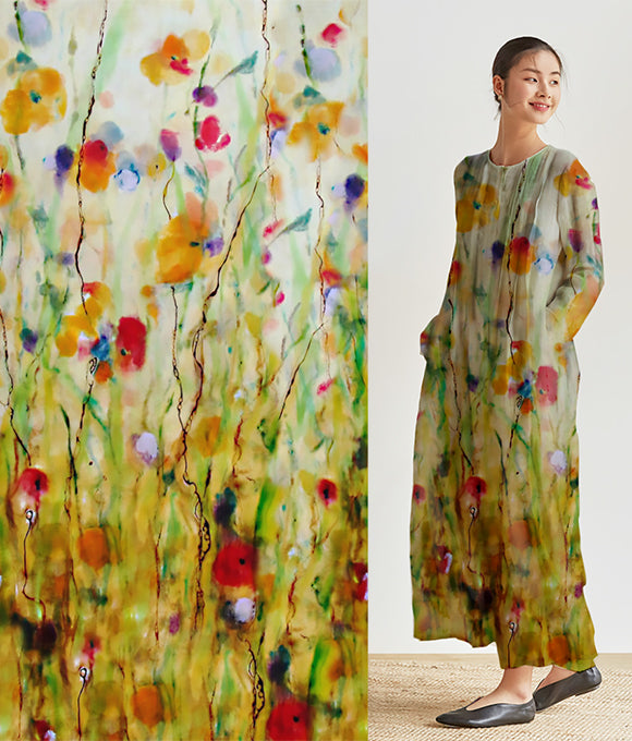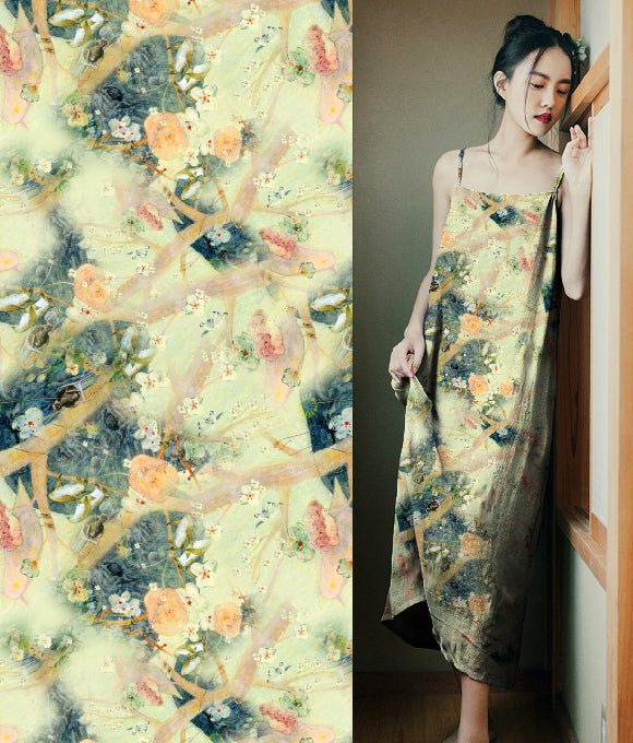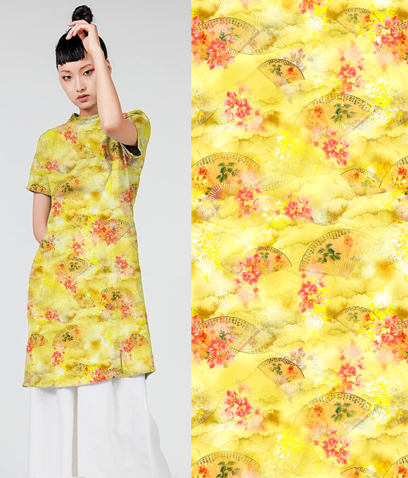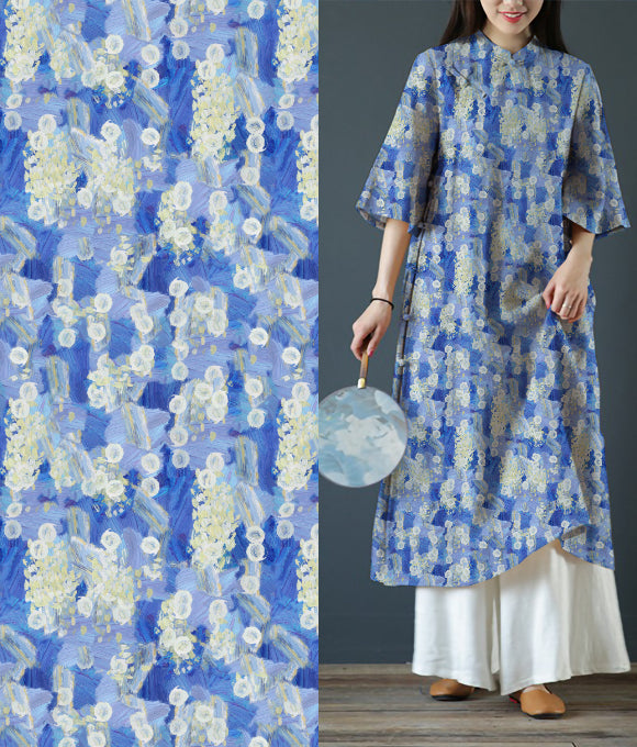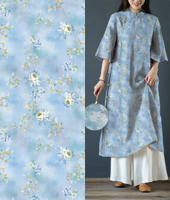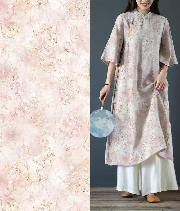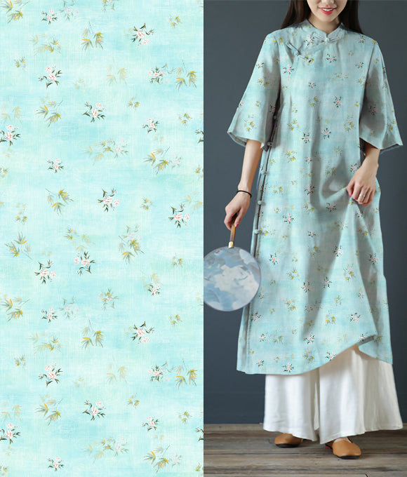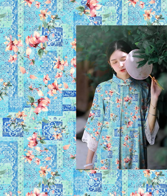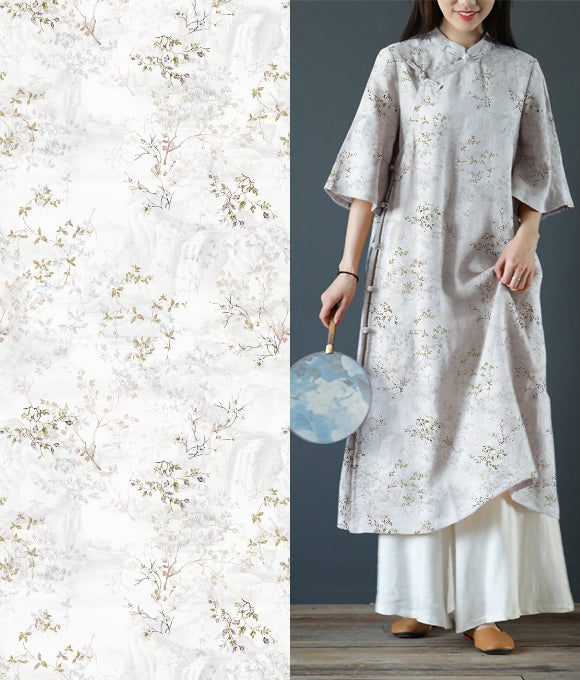 La frase 'Las nubes evocan su vestimenta, las flores su belleza; la brisa primaveral acaricia la barandilla, y el rocío brilla intensamente' es parte del poema Qing Ping Diao: Las Nubes y los Atavíos de Li Bai, que elogia la gracia y el esplendor de la concubina imperial de manera sutil, sin dejar huella. De manera similar, la tela de lino posee una cualidad discreta pero elegante, con una pureza que irradia fuerza en su simplicidad.